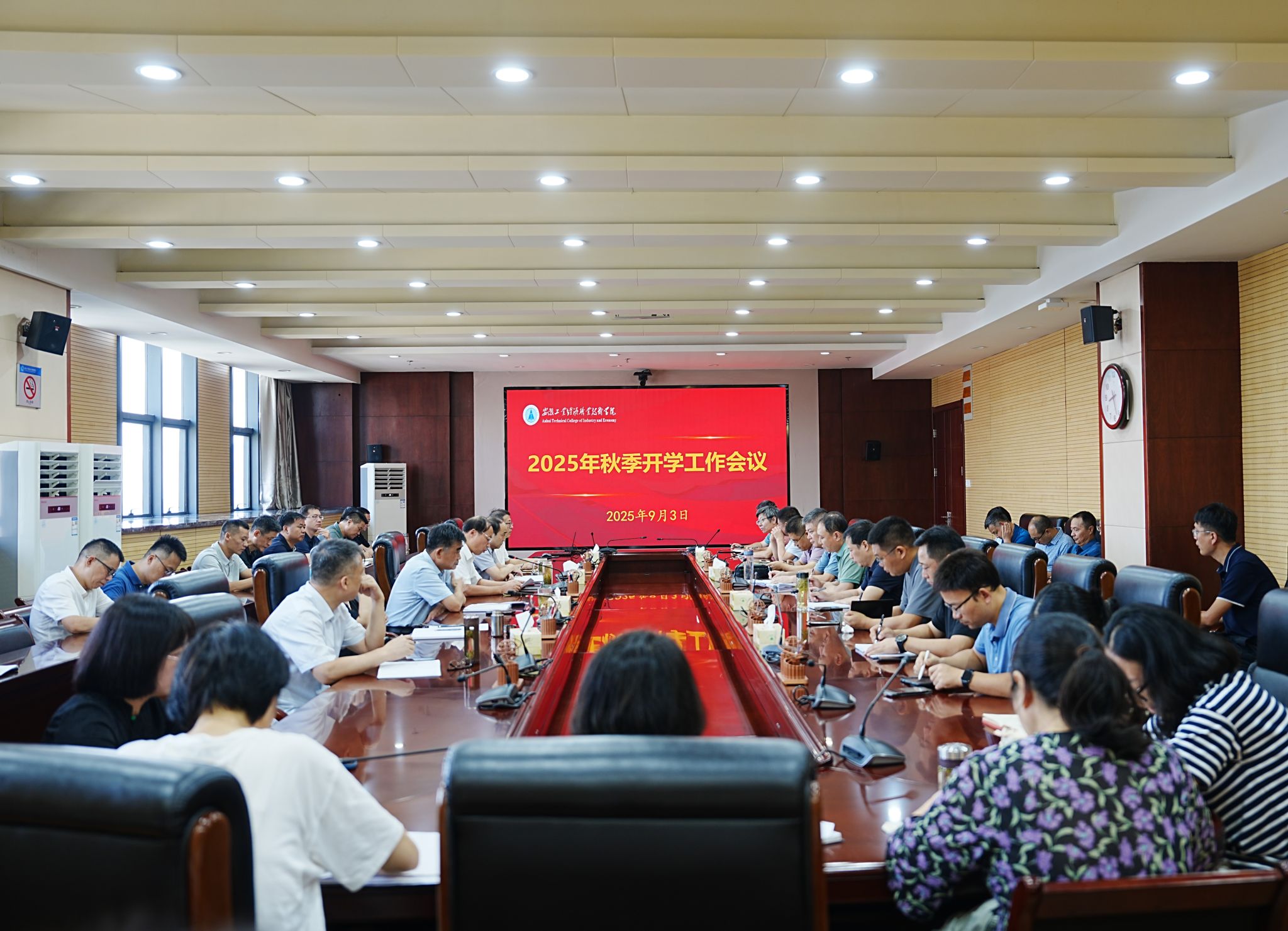 9月3日上午,学院召开2025年秋季开学工作会议,全面总结上半年工作,分析当前发展形势,部署新学期工作。党委书记许卫主持会议并讲话,党委副书记、院长刘仁金作工作报告,院领导周和平、黄雪飞、吴飞、赵凯出席会议,全体中层干部参加会议。