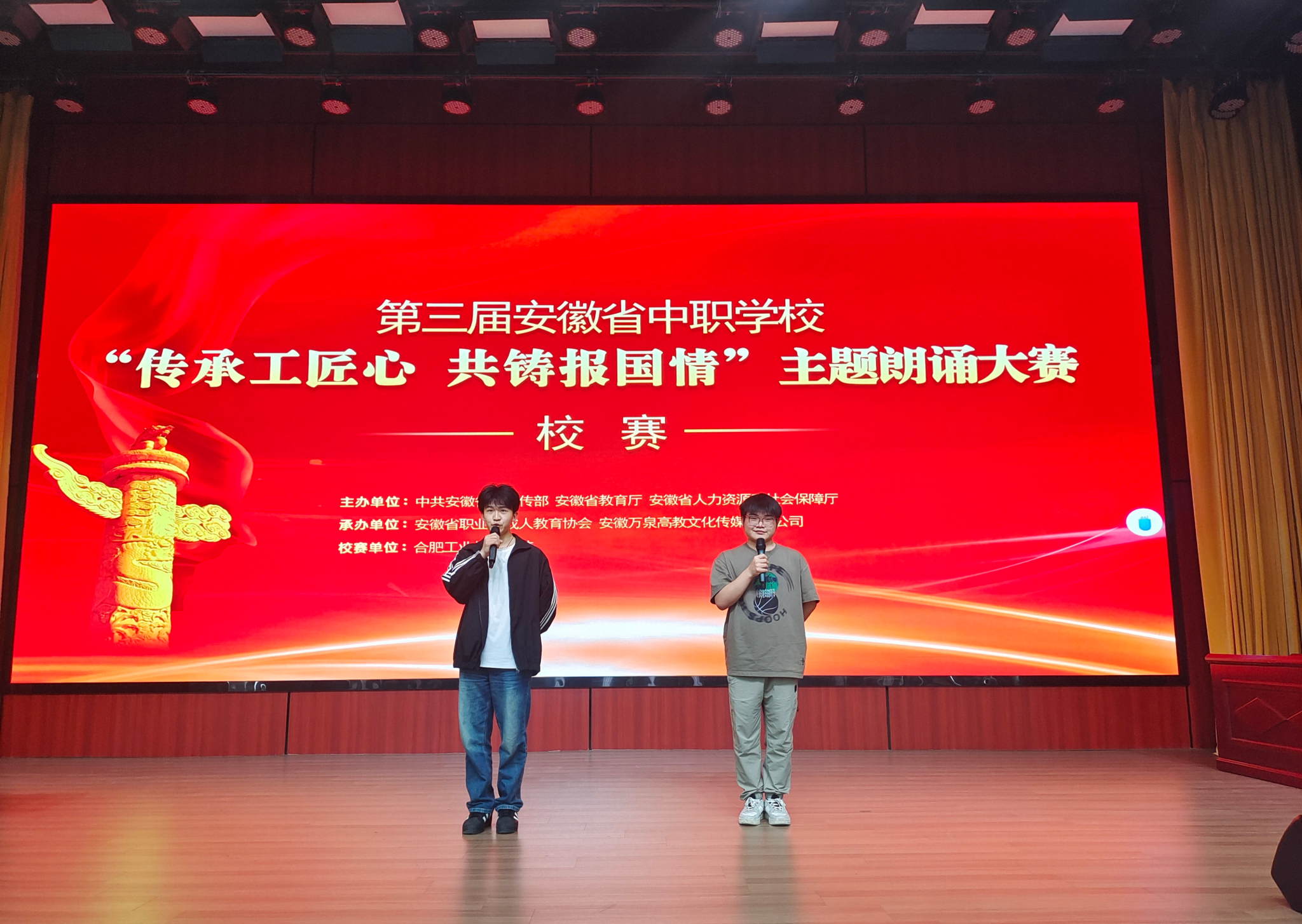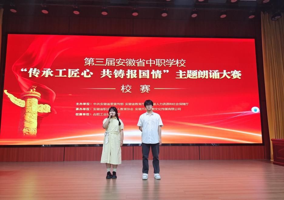 2025年4月23日下午,合肥工业技术学校成功举办“传承工匠心共铸报国情”主题朗诵大赛校赛。经过选拔,高新校区与祁门路校本部共16名选手进入校赛。本次活动旨在引导学生厚植家国情怀,弘扬工匠精神。