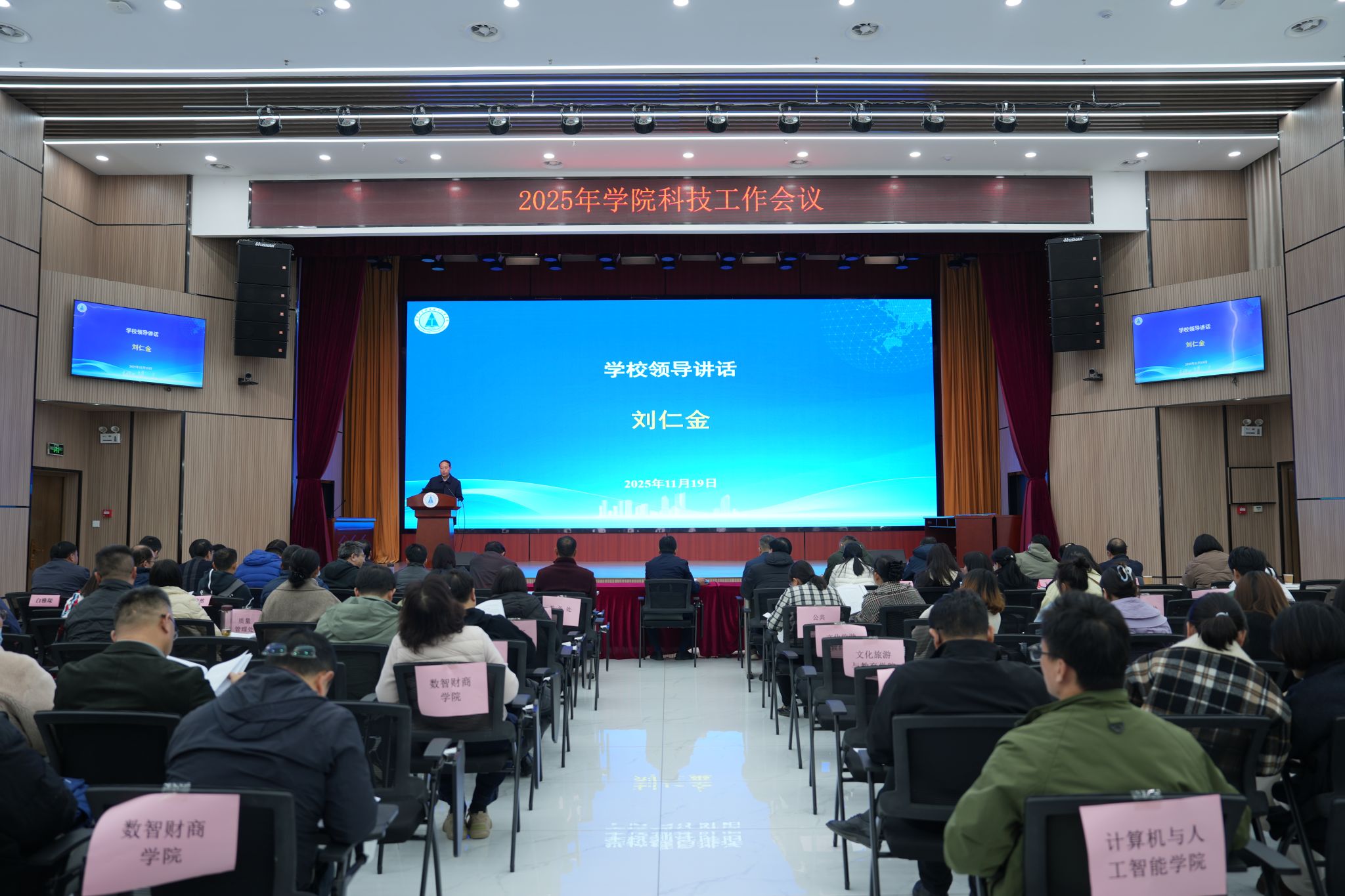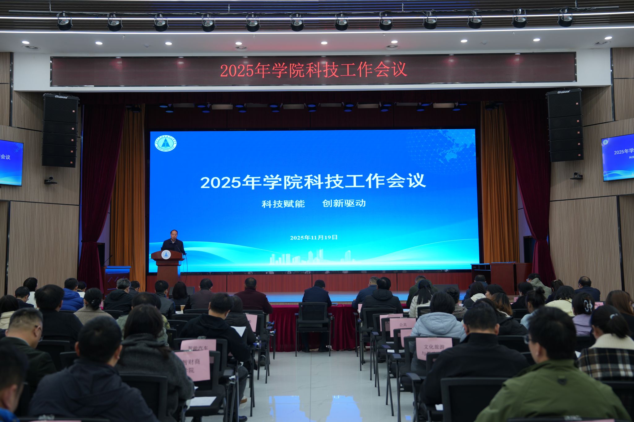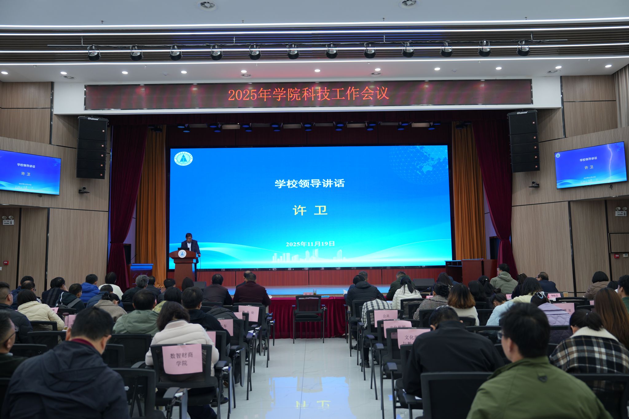 11月19日,安徽工业经济职业技术学院2025年科技工作会议在图书馆一楼报告厅召开,会议主题为“科技赋能,创新驱动”。安徽财经大学副校长王兵应邀作专题讲座。党委书记许卫出席会议并讲话,党委副书记、院长刘仁金主持会议,党委委员、副院长吴飞出席会议。
