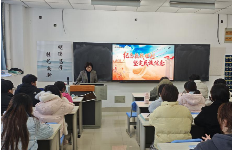 课上,周和平围绕“铭记历史,正义必胜”“民族壮举,浓墨重彩”“精神丰碑,永不磨灭”“珍爱和平,开创未来”等方面,依托丰富史实、详实数据和典型案例,生动阐释了中国人民抗日战争的艰辛历程与伟大抗战精神的深刻内涵。她指出,抗日战争胜利是中华民族从危亡走向复兴的重要转折,中国共产党在其中发挥了中流砥柱的作用,她鼓励同学们从中汲取精神养分,坚定理想信念。
