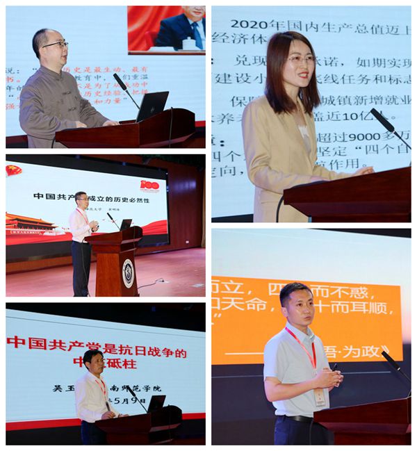 此次教学展示活动分为“名家名课·思政课名师讲党史教学展示”和“青年讲坛·思政课教师党史说课教学展示”两个环节。名家名课环节合肥工业大学马克思主义学院钱斌教授作题为《对中国革命道路的探索》、安徽师范大学马克思主义学院崔明海副教授作题为《中国共产党成立的历史必然性》和淮南师范学院马克思主义学院吴玉才教授作题为《中国共产党是抗日战争的中流砥柱》的教学展示。青年讲坛环节先后展示了全省党史说课大赛获奖选手代表安徽建筑大学马克思主义学院蔡正丽老师作题为《决胜全面小康,开启崭新征程》和安庆职业技术学院马克思主义学院胡良沛老师作题为《弘扬家庭美德,传承红色家风》的教学展示。展示活动中,每位教学名师和教学能手都展现了各自丰厚的知识底蕴、精湛的教学技能和独特的教师风采,让人眼界大开,赢得一致喝彩。