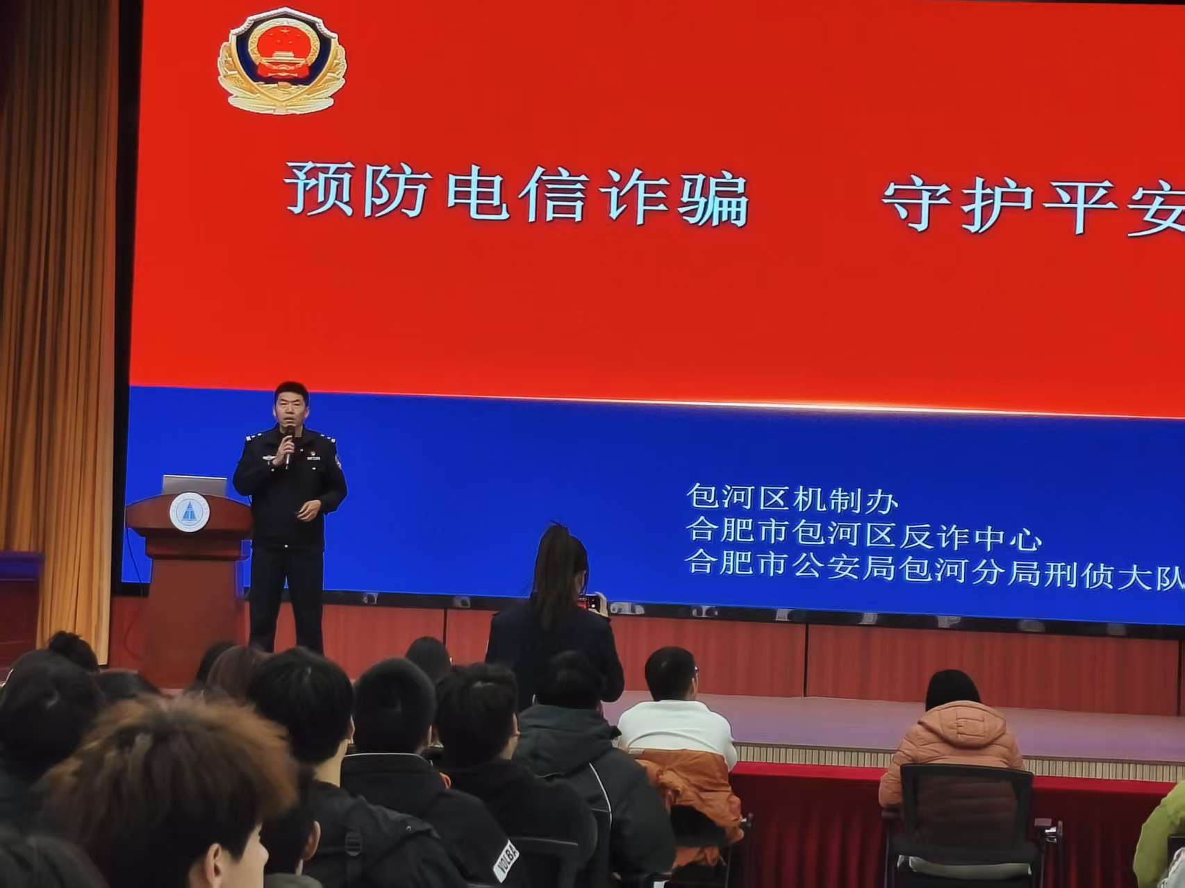 12月3日下午,“预防电信诈骗,守护平安校园”主题讲座在我校新图书馆一楼报告厅举行,合肥市公安局包河分局刑侦大队苏伟同志担任主讲。讲座结合真实案例,深入剖析了当前电信网络诈骗的最新形势、特点及防范要点,为奋战在学生工作一线的辅导员和骨干学生们提供了宝贵的识别与应对指导。通过提升“关键人”的预警与教育能力,进一步织密了校园安全防护网络,将“预防电信诈骗,守护平安校园”落到实处。