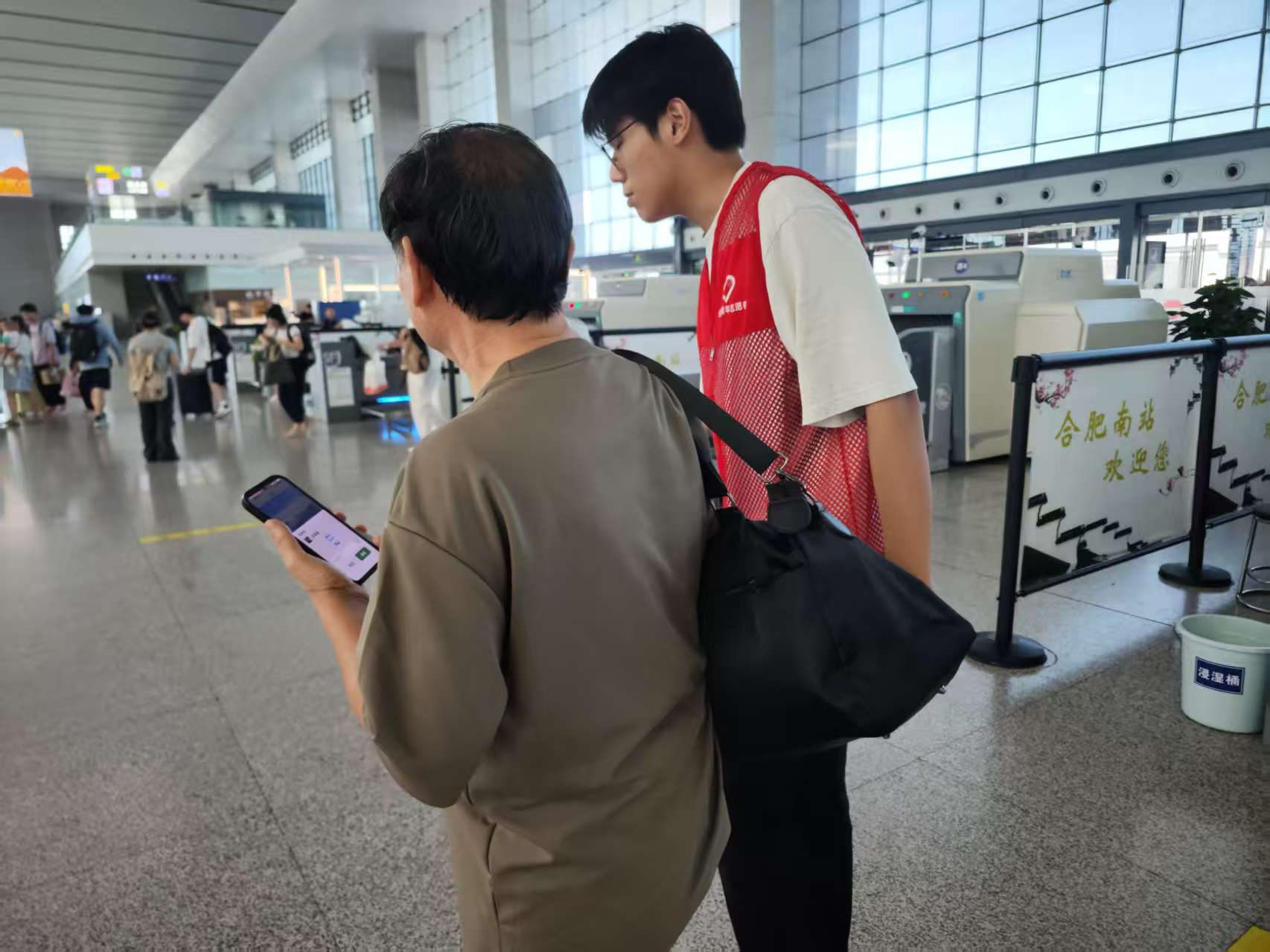 暑假期间,王智成主动投身于合肥南站的志愿服务工作。他怀着热忱加入“红枫志愿者”服务团队,在家人的全力支持下,暂别假期的休闲时光,将精力投入到这份温暖的公益事业里。