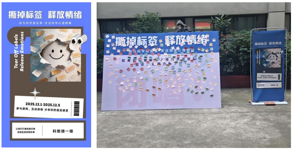 (供稿:傅寅审核:毕倩茹王厚红)为营造包容友善的校园心理氛围,疏导心理压力,帮助学生摆脱负面标签束缚,切实落实“我为同学做实事”的工作理念。12月1日至5日,计算机与人工智能学院于科教楼成功开展“撕掉标签,释放情绪”校园心理主题活动,以沉浸式互动形式搭建起情绪疏导与自我接纳的暖心平台。