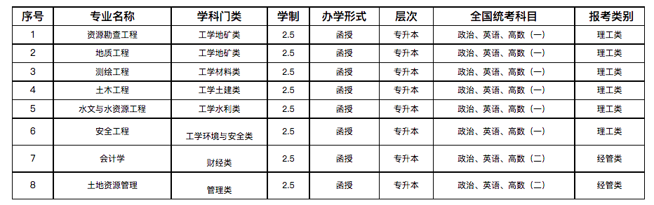 (二)、中国地质大学(武汉)合肥函授站招生专业