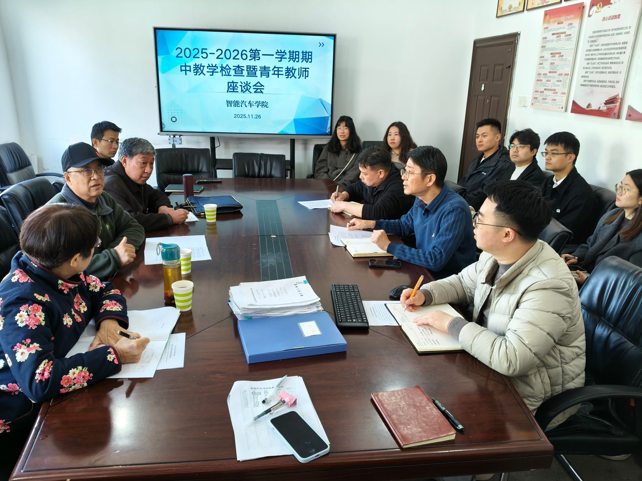 2025年11月26日,智能汽车学院召开2025-2026学年第一学期期中教学检查暨青年教师座谈会。学院督导组组长付建民、督导组成员王皖发、江静莅临指导工作,智能汽车学院副院长史召峰主持会议,学院教学秘书、教研室主任及青年教师代表参加了本次会议。