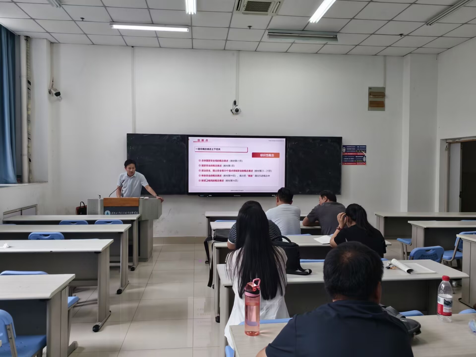 备课会上,教研室主任王天意对整个教材进行了剖析,他向授课教师说明了《国家安全教育大学生读本》的基本内容安排和创新点,并将教材的导论加十个章节概括为三大模块。第一模块包括导论、第一章至第三章,是教材的概论性章节,重点阐释我国国家安全工作的重大理论问题、政治问题和方法问题。第二模块包块第四章到第九章,以总体国家安全观的“五大要素”为叙述逻辑,每一章均从科学内涵、风险挑战、途径方法三方面具体展开。第三模块主要包括第十章,落实到大学生践行总体国家安全观应该“怎么做”。