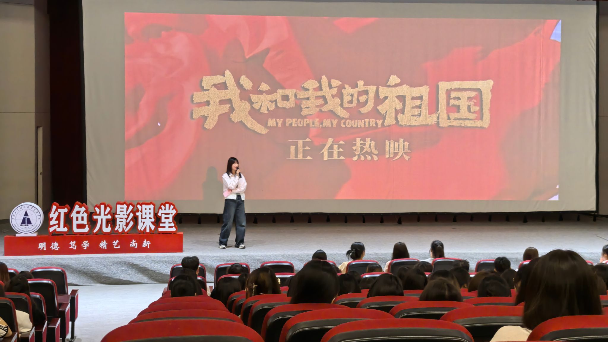 活动以二级学院为单位分批开展,打破传统思政课课堂边界,将红色经典、时代先锋、文化传承等主题电影纳入思政课程体系。马克思主义学院优秀思政教师担任“光影课堂导师”,在每场电影放映前开展10分钟的“微导学”,围绕影片历史背景、人物精神、价值内涵等进行解析。在首场《我和我的祖国》专题观影活动中,章文娟老师以“个人奋斗与国家命运同频共振”为主题,对影片中的角色和内容进行深度解析,这种“以艺载道、以案释理”的教学方式,使严肃抽象的理论变得鲜活可感,有效提升了思政课的吸引力和感染力。