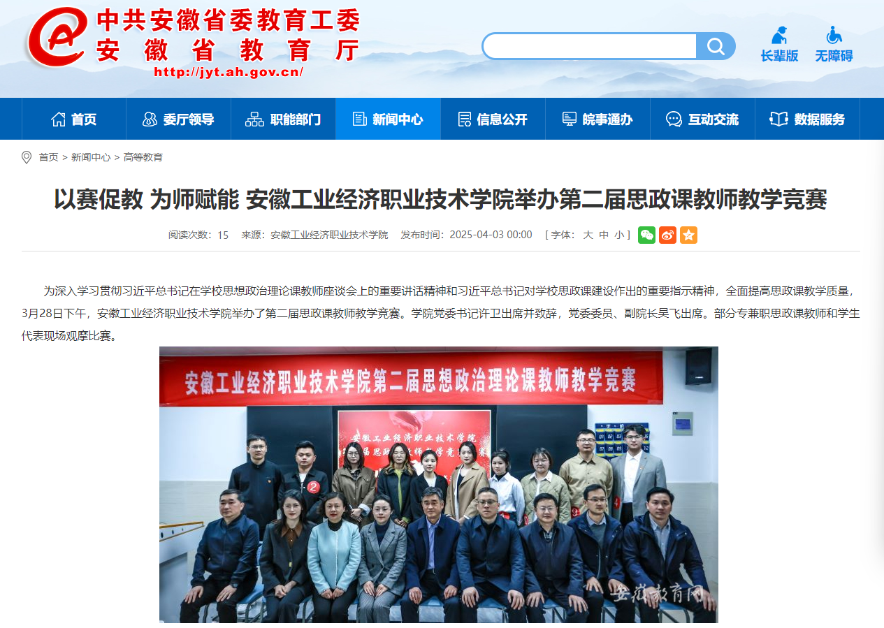 【媒体聚焦】安徽教育网:以赛促教 为师赋能——安徽工业经济职业技术学院举办第二届思政课教师教学竞赛