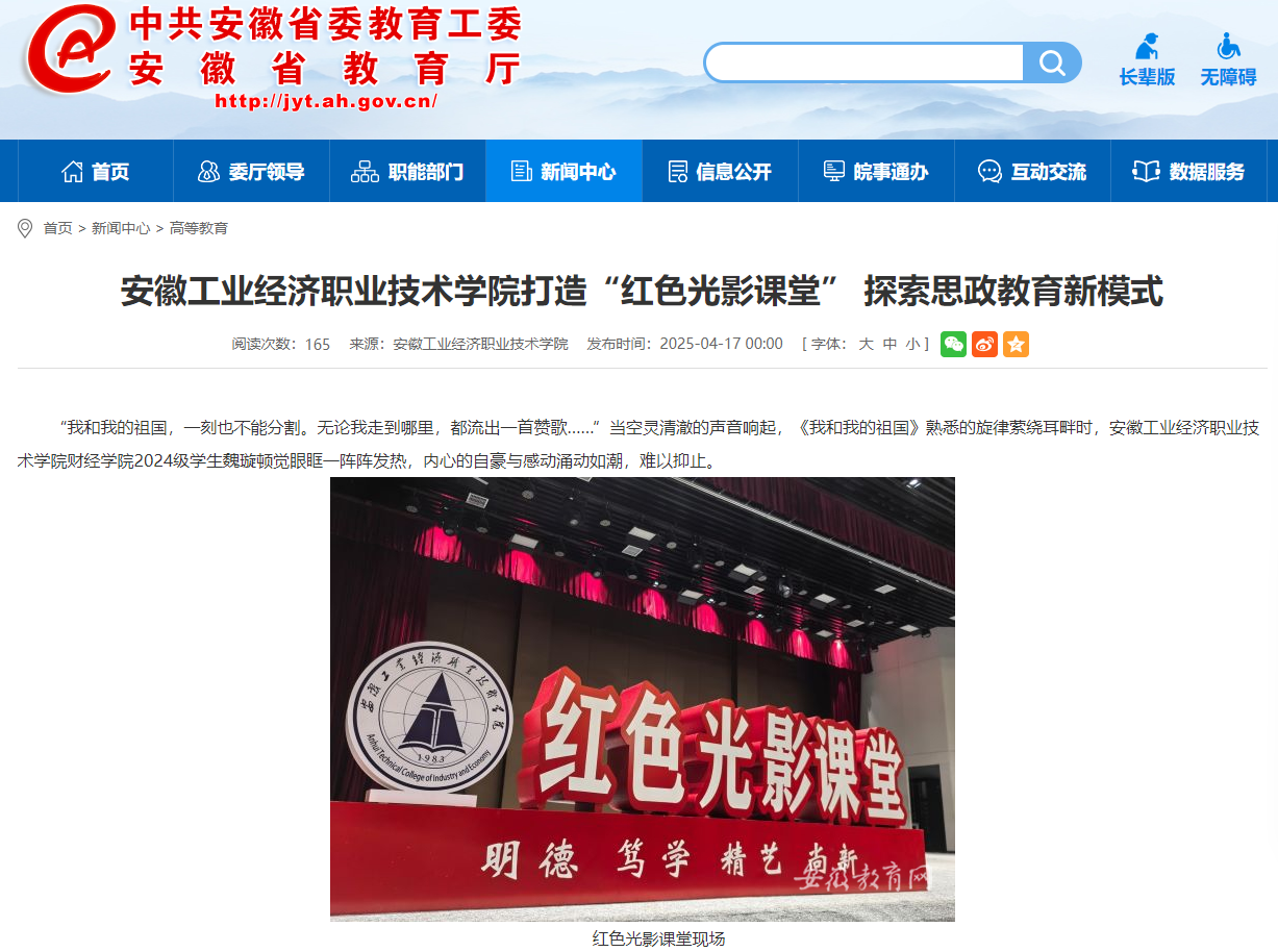 【媒体聚焦】安徽教育网:安徽工业经济职业技术学院打造“红色光影课堂” 探索思政教育新模式
