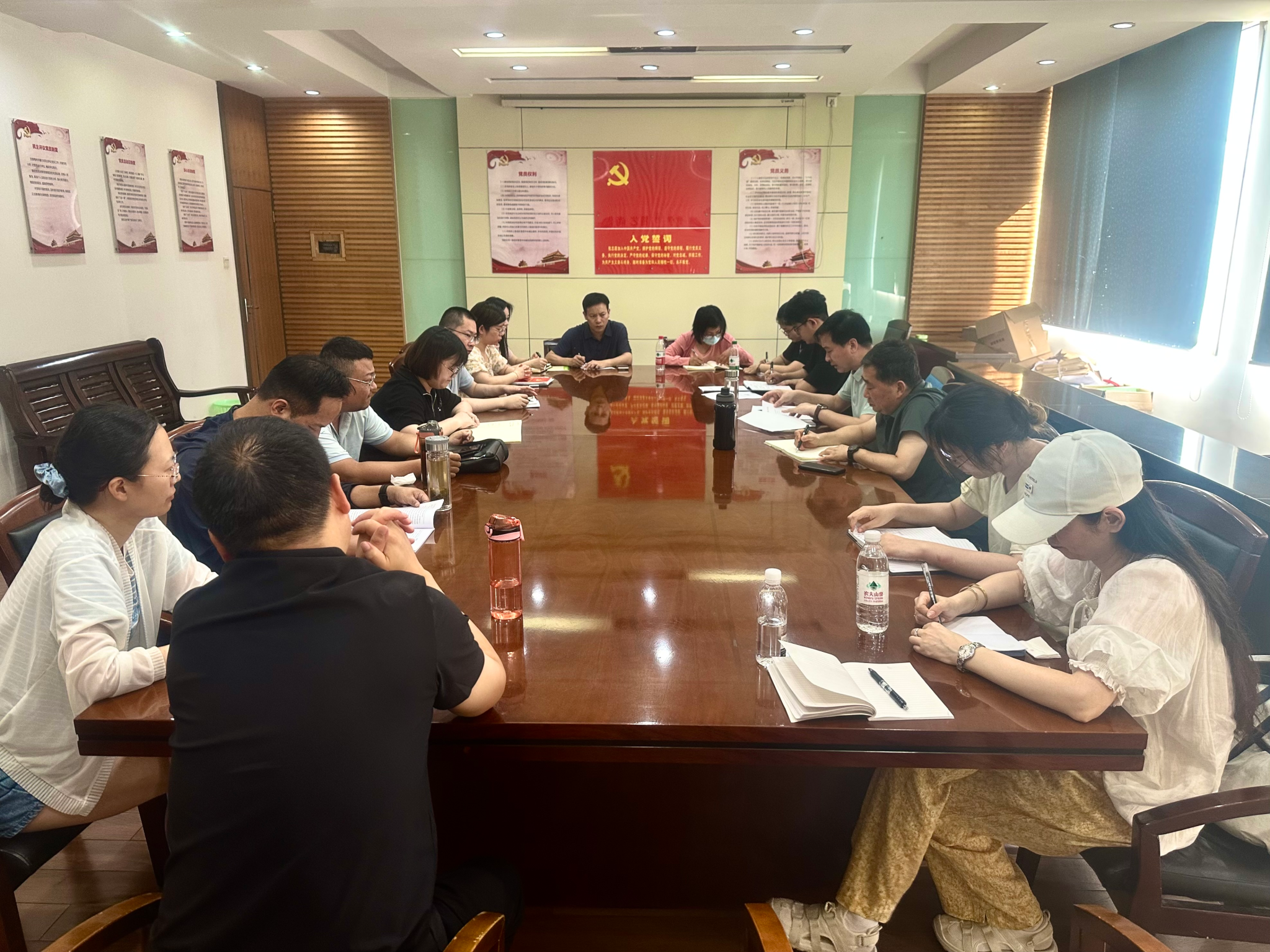 7月4日下午,马克思主义学院召开2024-2025学年第二学期第四次全体会议,党总支书记葛军出席并主持会议,院长刘仁三全面总结本学期工作,就暑期和下学期重点工作进行强调部署安排,全体教师参加会议。会议集中学习了《省地矿局酒驾醉驾常态化治理的意见》等文件,传达通报了综合考核办法(修订)讨论会有关情况。会议还就省委巡视反馈问题整改后续工作、省第四届大学生讲思政课比赛、暑期校内外师资培训等重点工作进行了部署。(根据会议记录整理)