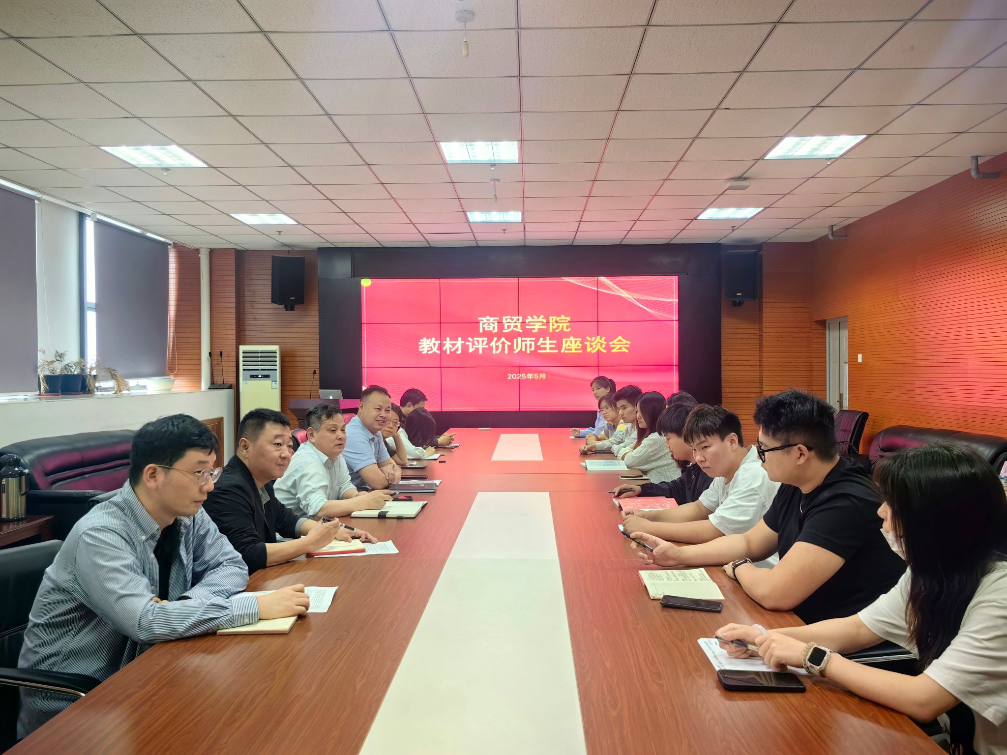 2025年5月23日上午,商贸学院于主教810召开2024-2025学年第二学期教材评价师生座谈会,会议由党总支副书记宋庆福主持,院长潘文明,教务处教学资源科科长韩辉、教研室主任、教学秘书、教师代表、学生代表等参会。