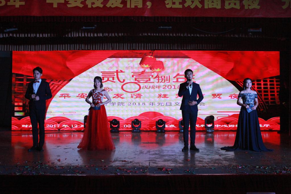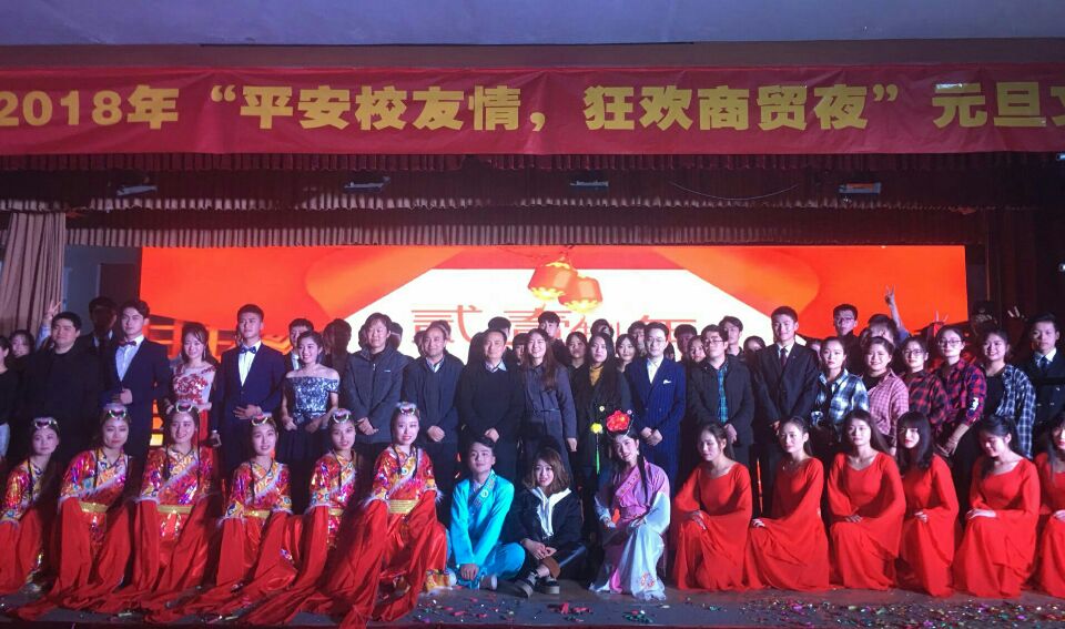 12月25日晚,商贸学院2018年“平安校友情,狂欢商贸夜”元旦文艺晚会在科教四楼多功能厅盛大开幕。院领导崔景茂、黄雪飞、商贸学院党总支副书记张善智、副院长李平、办公室主任李建树、团总支书记许雷川、各班级辅导员老师以及中国平安上海总部的校友出席晚会与商贸学子欢聚一堂,共享盛会。本次晚会由袁敏、邵旗胜、曹晶晶、洪虎主持。