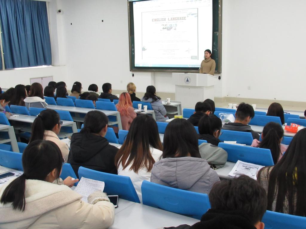 为了检验全院学生的英语学习水平,增强全院的英语学习氛围。12月13日,第五届英语口语大赛专业组比赛在教学主楼112圆满举行。Bea、朱珊珊、黄莹、孙伟、李建树、解璐、刘红萍老师担任此次比赛的评委。商务英语专业学生出席,12名选手参加。本次活动由许霞、何凡主持。