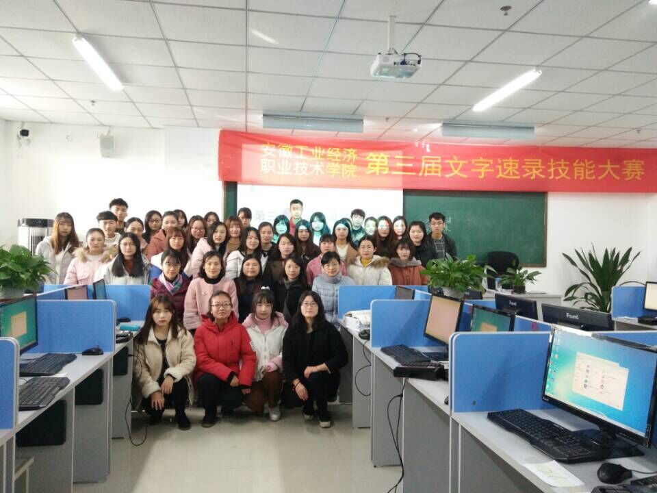 本网讯(周文/供稿,袁敏/图片)12月9日上午9点,2017年安徽工业经济职业技术学院第三届文字速录大赛在主教楼704室隆重举行。此次大赛由商贸学院文秘教研室主办,追声速录协会承办,其宗旨为检测学生的专业及综合素质水平,提高学生的专业素养,选拔安徽省职业技能大赛文秘速录赛项的预备选手,院宣传部部长胡成科、文秘教研室主任王燕、文秘教研室程娟老师、武迪老师以及马玉娟老师担当了比赛的裁判及评委。