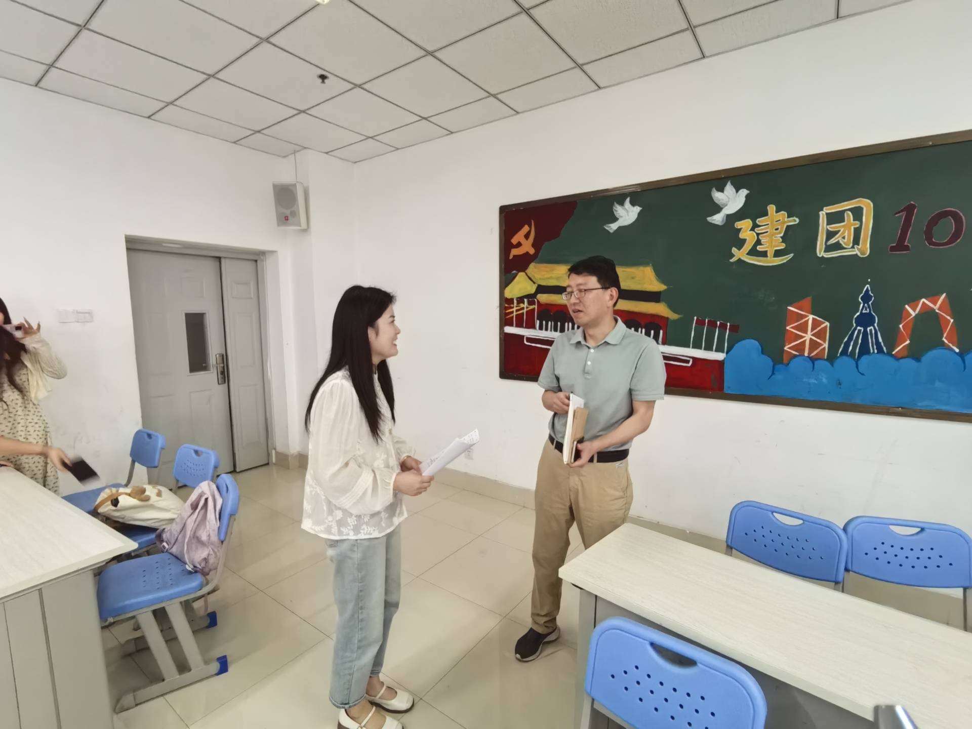 听课时,赵凯书记神情专注,全程认真记录课程要点与思考。课后,他立即与王燕平老师进行了深入交流。赵书记高度肯定了王老师扎实的理论功底、清晰的教学逻辑和富有感染力的课堂氛围,认为课程内容紧扣主题,史料运用得当,有效激发了学生的历史责任感和理论认同。同时,他也从进一步优化课堂互动设计、深化理论联系现实的结合点等方面,提出了中肯且具建设性的改进建议。