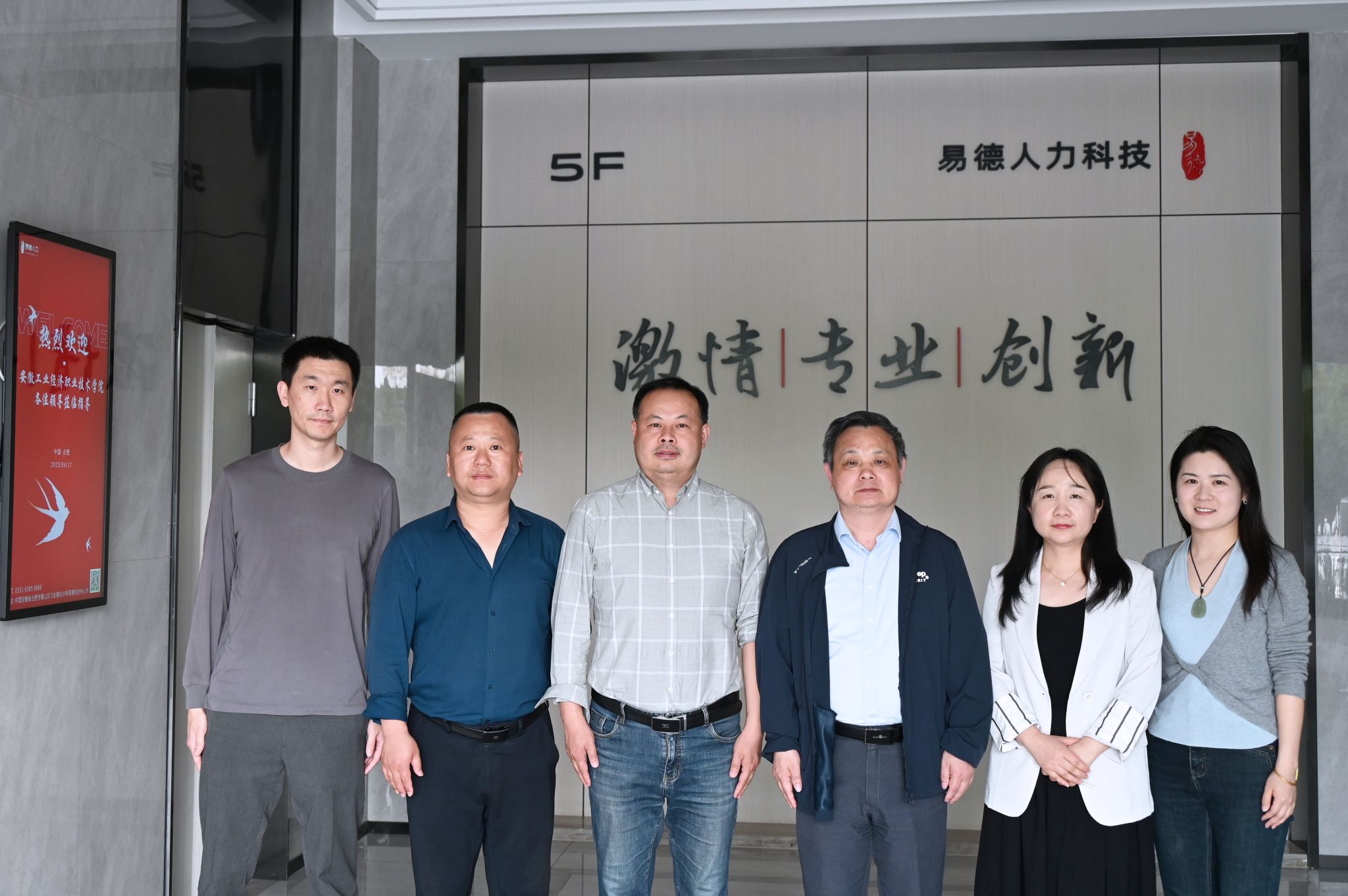 (供稿:王燕平 审核:宋庆福 潘文明)2025年4月18日,商贸学院院长潘文明、党总支副书记宋庆福、实习指导老师吴标以及2026届毕业生辅导员王燕平一行四人,前往合肥市易德人力科技股份有限公司开展访企拓岗活动。易德人力科技公司人力总监朱小玲、副总裁窦磊热情接待。