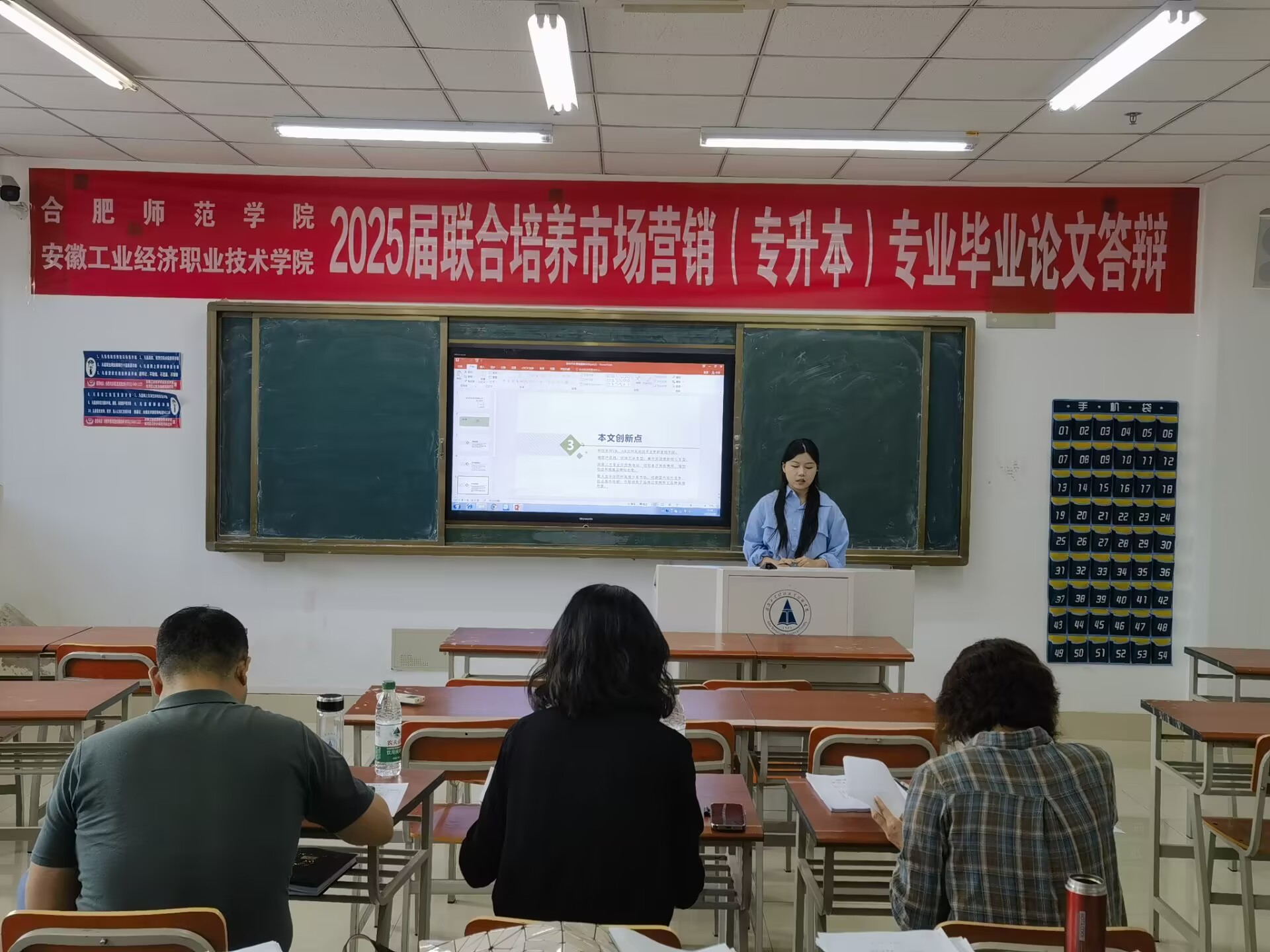 (供稿:张丽丽 审核:潘文明 宋庆福)为全面检验联合培养学生的专业学习成果和毕业论文质量,5月28日,商贸学院顺利组织开展2025届合肥师范学院联合培养市场营销(专升本)专业毕业论文第一次答辩工作。本次预答辩共计62名学生参加,分为5个答辩小组,在主教学楼四楼同步进行。