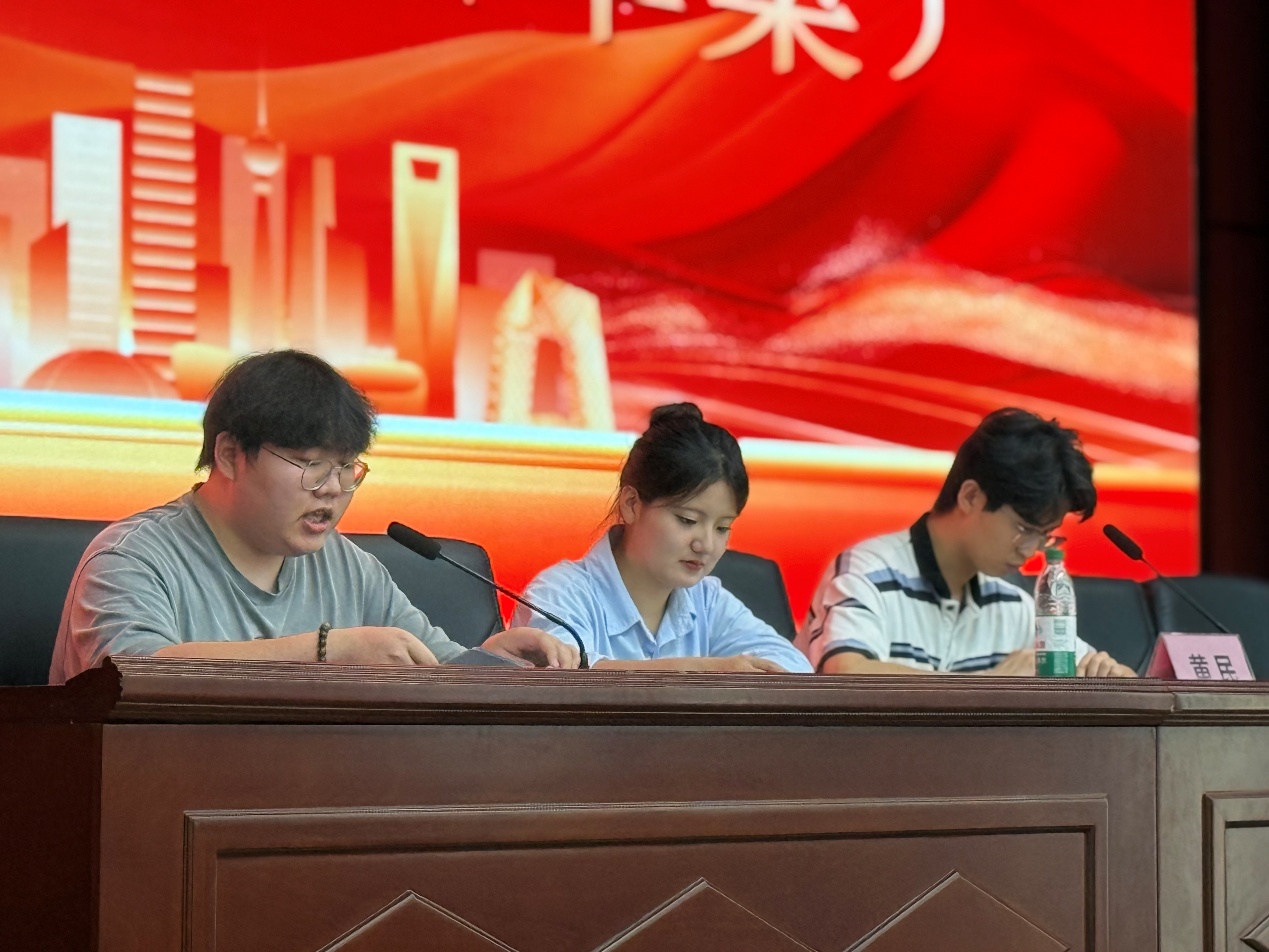 (供稿:赵硕、蒋梦彤、黄民 审核:宋庆福)6月12日,图书馆一楼报告厅内国歌嘹亮、掌声雷动,商贸学院第二十三次团员代表大会暨学生代表大会在此隆重举行。来自各年级、专业的116名学生代表肩负使命齐聚一堂,商贸学院党总支、团总支相关负责人出席会议,共同见证这场凝聚青春智慧、共谋发展蓝图的盛会。大会由商贸学院团总支干事黄民主持,商贸学院党总支副书记宋庆福出席开幕式并发表讲话,学管干事钱筱茹及辅导员孙伟、龚丽兰、谢斐、王燕平、吴岳昊列席指导。