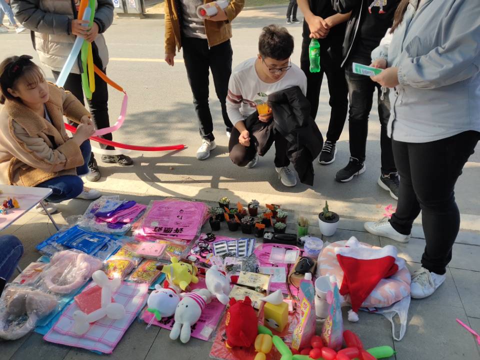 活动开始就能听到同学们喊卖声,放眼望去摊位上商品琳琅满目,吸引了许多“顾客”的目光。色彩缤纷的盆栽、奇幻酷炫的模型、精致小巧的挂件等精美的商品让人应接不暇。在出售的过程中,时不时还会有讨价还价的声音传出,场面十分宏伟。