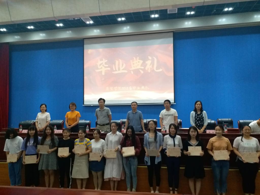 5月30日下午,商贸学院2018届毕业典礼于主教214顺利举行。商贸学院副院长李平、党总支副书记张善智、办公室主任李建树以及辅导员程娟、黄莹出席。18届全体毕业生参加,会议由许雷川主持。