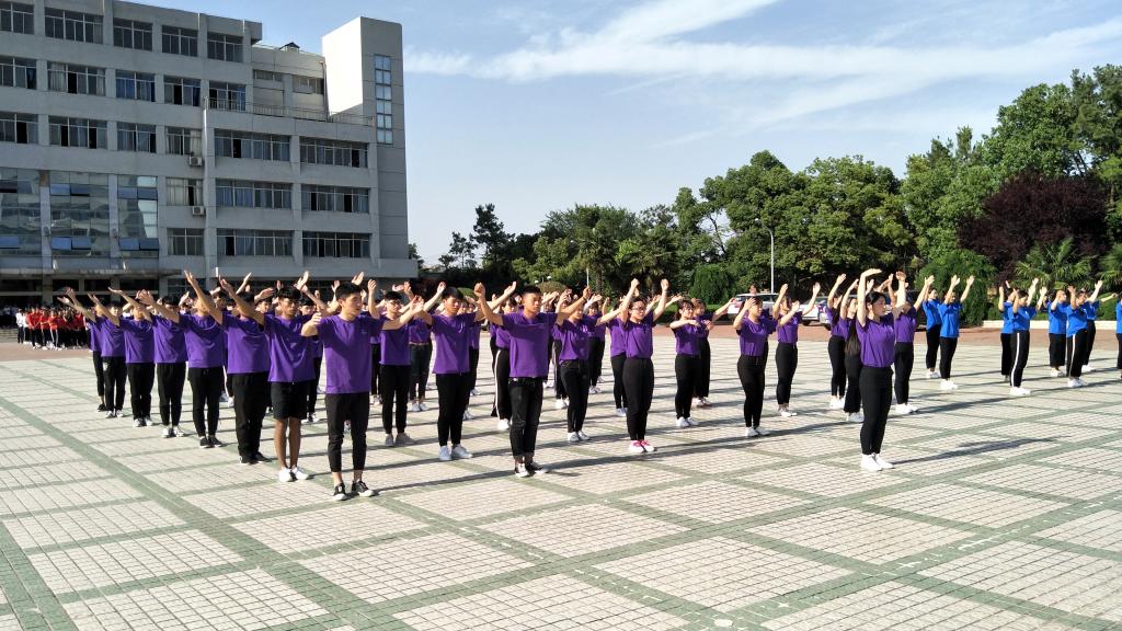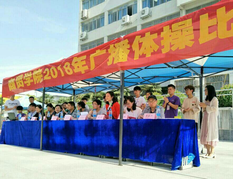 为丰富学校的文体活动,增强学生的健康意识和身心素质,培养学生组织纪律性,商贸学院在5月23日下午教b广场举行广播操比赛。商贸学院党总支副书记张善智、团总支书记许雷川,辅导员武迪、柴建华、方子珍、黄莹、孙伟、程娟、马玉娟出席本次比赛并担任评委。