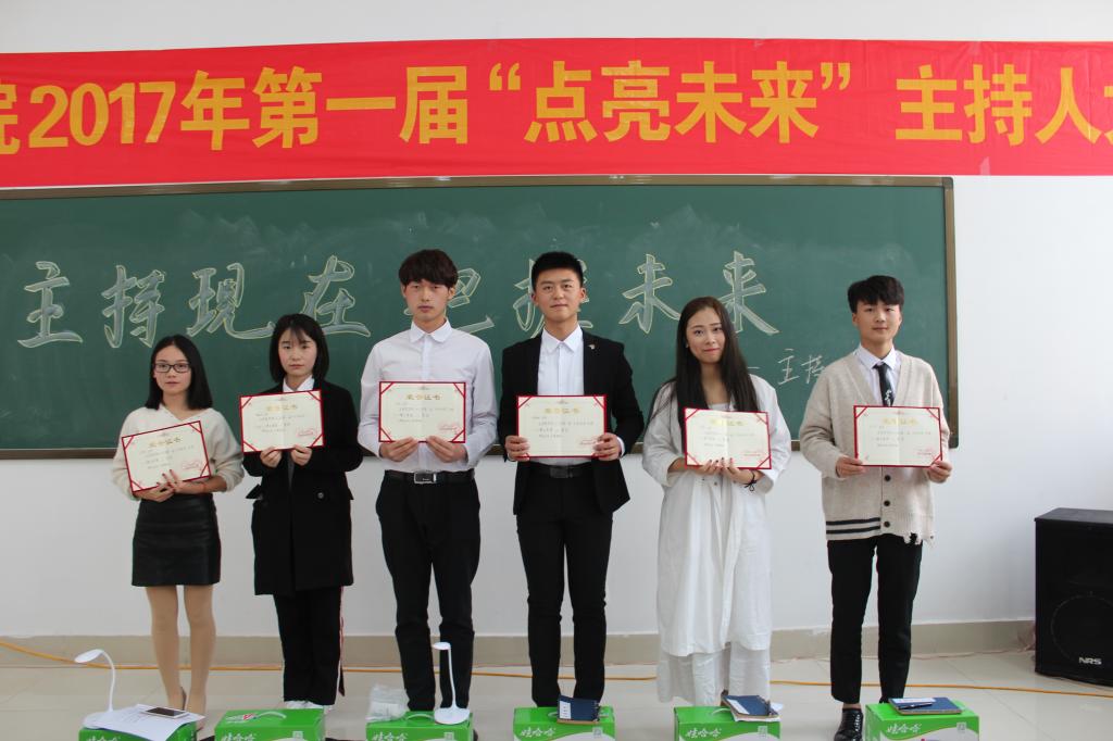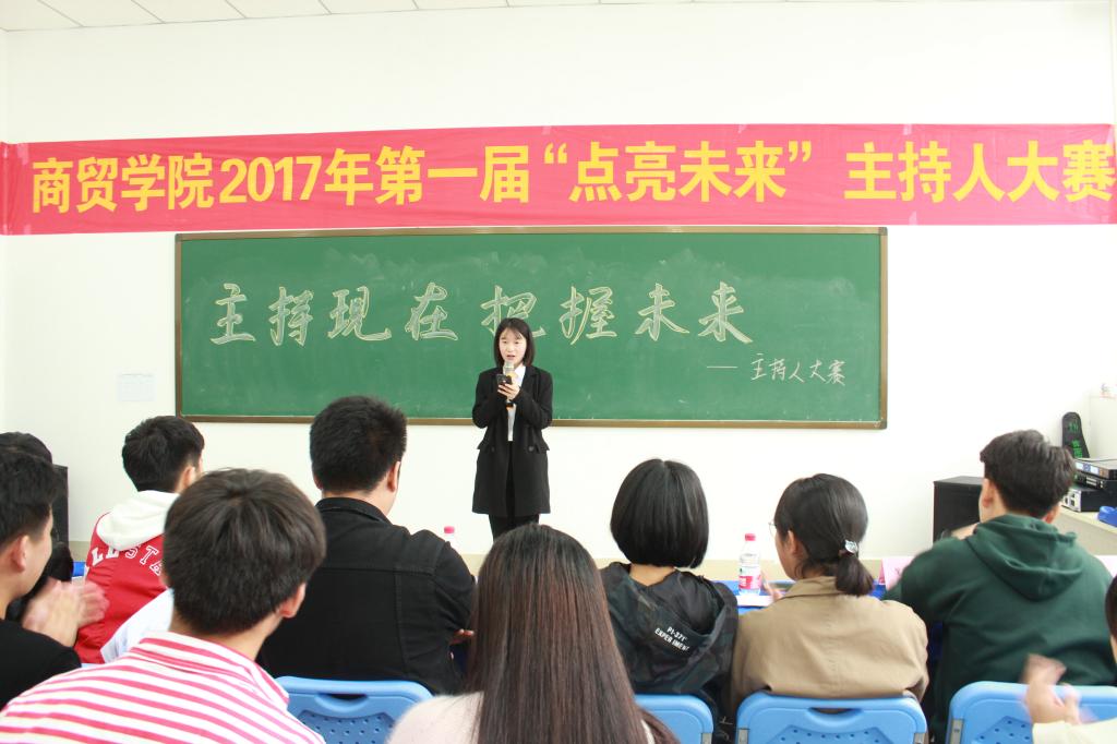 为了丰富同学们的课余文化生活,弘扬校园文化,展现当代大学生风采。 10月20日中午,商贸学院2017年第一届“点亮未来”主持人大赛在教学主楼113教室举行。学管干事许雷川、杨忠良、周军伟、周文、袁敏、李豪文担任此次比赛的评委。各二级学院学生会、院大学生记者团、院广播站代表出席,23名选手参加。本次活动由宋海波主持。