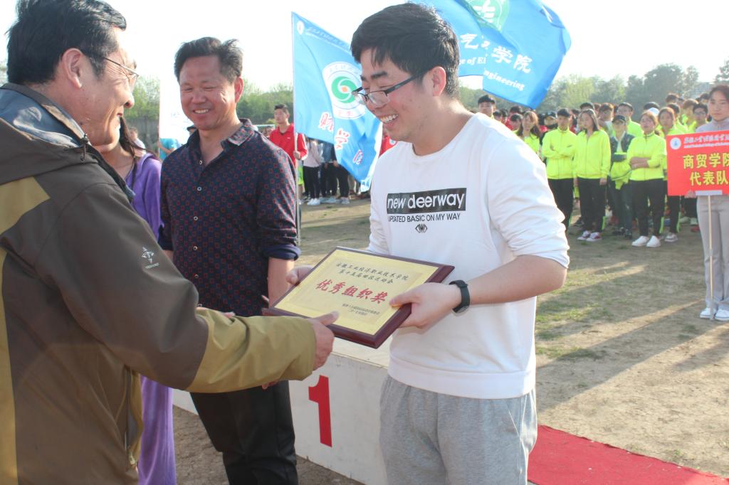 闭幕式上,商贸学院运动员代表队身着红色队服,整齐划一、身姿挺拔站立在操场中央,他们目光坚毅,英姿飒爽。在陈小军为获奖者挂起奖牌时,整个商贸学院掌声、喝彩声不断,很好的展现商贸学院整体的精神风貌和运动精神。