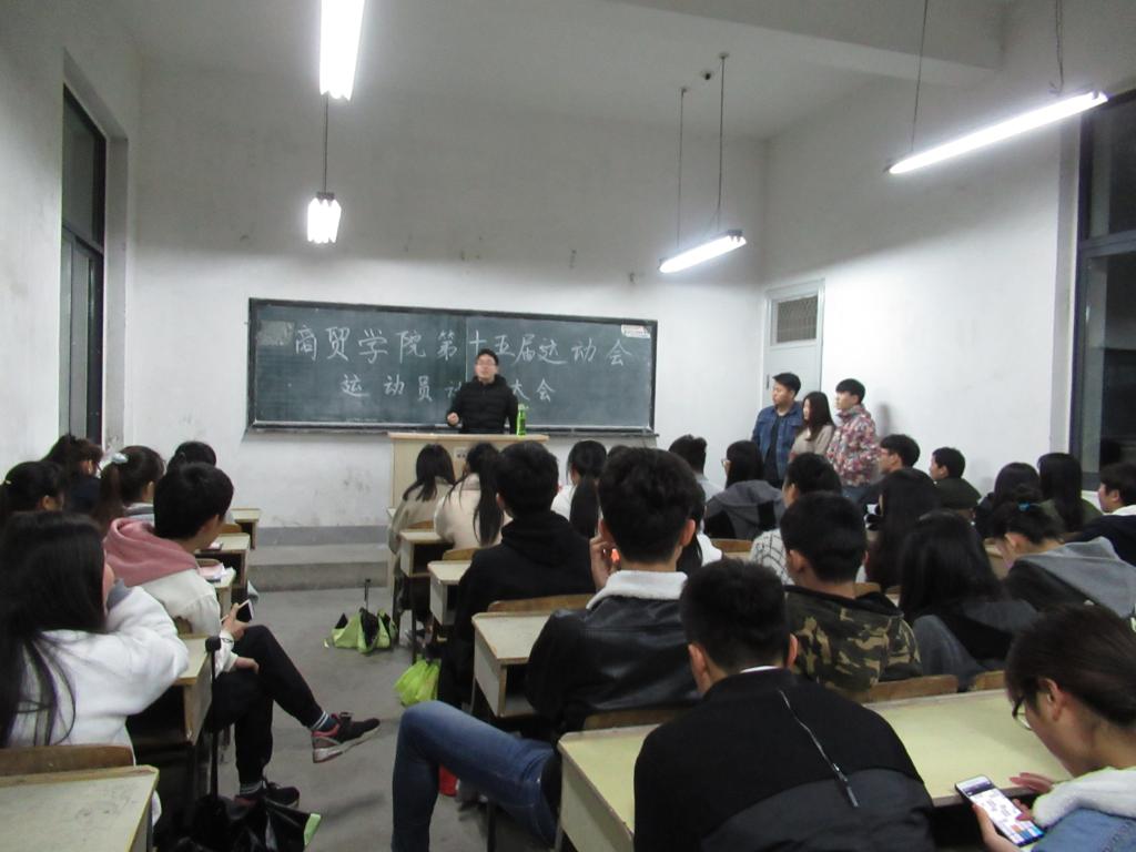 3月30日晚上6时,第十五届田径运动会运动员动员大会在综合楼104教室顺利召开。商贸学院学管干事许雷川莅临,学生会主席杨忠良、副主席张慧以及72名运动员参加此次动员大会。