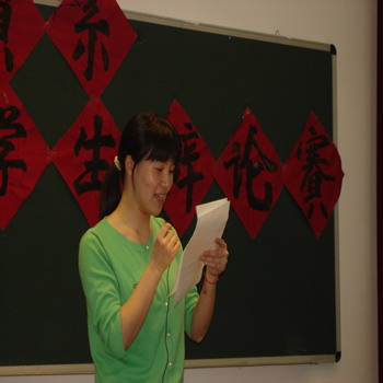 我系第二届大学生辩论赛经过预赛、复赛,于4月24日下午4:30在教B101进行决赛。来自大一商务秘书专业和营销与策划专业的八名辩手,经过激烈、精彩的辩论,最终以正方商务秘书专业获胜,张荣同学获得“最佳辩手”称号。