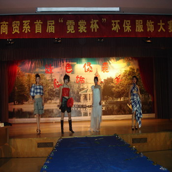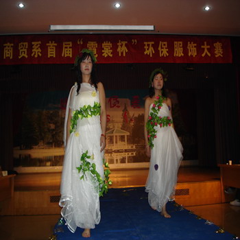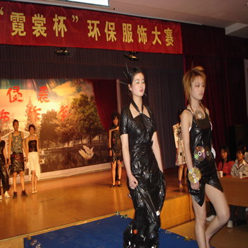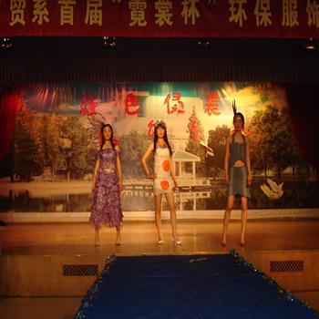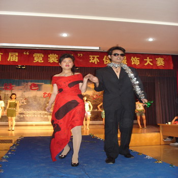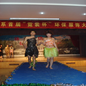 来自我系13支代表队的大学生,利用各种废弃物品制成各种时装,进行了服饰展示。活力四射的表演,展现了当代大学生强烈的环保意识。灵动的音乐,跳动的青春,激动了生机与活力,激烈的比赛酿出了大学生的缤纷。比赛以精彩的乐队演奏拉开了序幕,在闪烁的灯光下,13支参赛队伍都依次登台展示了自行设计的、富有特色的服饰。身着奇装异服的模特们扭着猫步“闪”在T形台上,配合着动感的音乐和变幻的灯光,给观众们带来了全新的视听享受。40431班带来的服饰表演《回首烟云》、《纸之翼》、《波多黎克制风》给人耳目一新的感觉。40411班的《天国的嫁衣》,是用白色塑料桌布制成的婚纱,不拘一格的设计,精心细腻的剪裁,卓越不凡的表演,震撼着每一位观众的心灵。40412班的参赛队利用报纸、海报制成的《王者风范》让人从各种颜色的服饰中领略不同的含义。40421班参赛队利用床单制成的《我爱我家》,创意独特,构思新颖。40542班参赛队以《绿野仙踪》为主题寻找森林寻找生命,给人留下无限遐想。其他各参赛队的节目也让观众们大饱眼福,回味无穷。不同凡响、开拓创新的设计,轻快流畅、独具风格的表演引发了同学们的激情,高潮一浪一浪的汹涌的掀起。