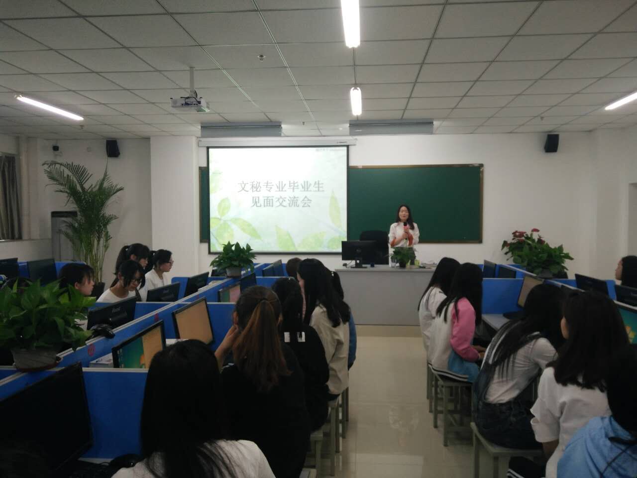 (商贸学院:夏娟 审核:李平)古人分离多折柳送别,在柳絮飘扬的季节,商贸学院学子迎来了自己的毕业季,他们会为自己的母校留下怎样的记忆?5月16日,商贸学院文秘专业部分学子在办理离校手续的同时,参加了该专业毕业生见面交流和师生座谈,畅谈实习和工作中获得的感受经验,对学弟学妹的大学学习和老师们的教学工作提出了宝贵的意见建议,为该专业的发展建设提供诸多有益参考。文秘教研室主任王燕、相关专业老师及2017届文秘专业优秀毕业生代表参加。
