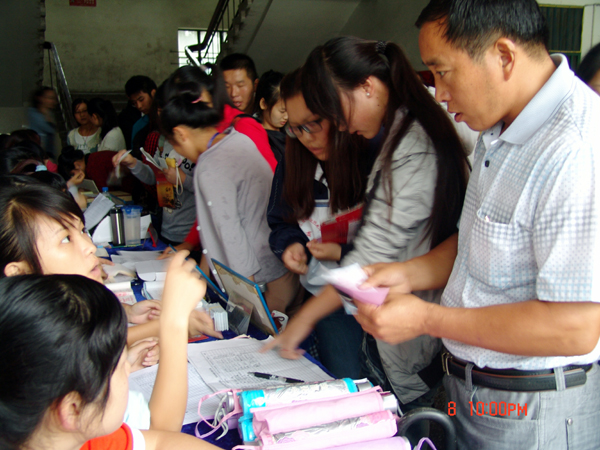 9日上午7时,商贸系学生会成员和各社团代表在校门口集合准备迎新工作。校门外、报到处、收费处,只要有新生的地方,就有他们忙碌的的身影。他们热情地为前来报到的新生服务,帮助他们拎行李,带领他们熟悉校园环境,还耐心地为他们学习和生活中的问题进行解疑答惑,帮助他们尽快熟悉大学校园的生活。