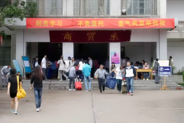 伴随着秋雨阵阵,商贸系迎来了2012级新生。9月9日,是我院新生正式入学报到的日子。商贸系学生会以及各社团代表在系主任姚明和系党总支副书记张俊峰的带领下积极投入到迎新工作中去,争取让每一位同学和家长感受到商贸系师生的热情,让每一位同学安心,让每一位家长放心。9日、10日两天,商贸系共迎接了383名新生入学报到。
