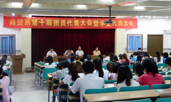 6月6日下午,商贸系第十届团代会暨学生代表大会在教B101隆重举行,系主任姚明、系各党总支副书记张俊峰、系副主任李平、系团总支书记王辉、武迪老师和各专业辅导员等以及来自商贸系的125名学生团员代表出席了大会。大会由王辉主持。
