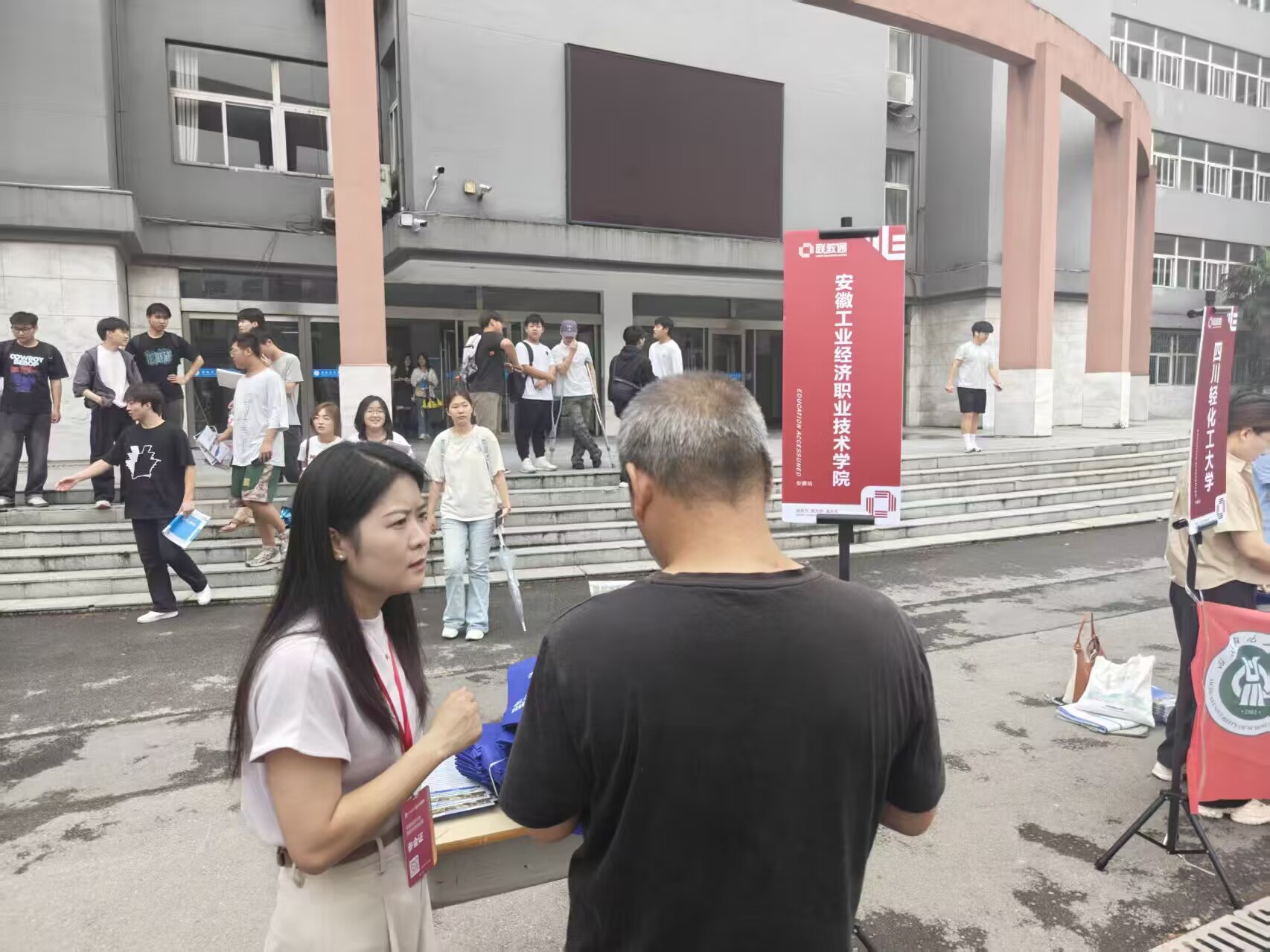 (供稿:吴岳昊 审核:潘文明、宋庆福)2024年6月26日至29日,安徽工业经济职业技术学院商贸学院组织教师团队赴阜阳阜南实验中学、颍上二中、阜阳四中、界首中学、太和八中、太和二中、临泉高等中学等七所高中开展招生宣传工作。此次活动以“精准服务高考生,搭建升学直通车”为主题,通过政策宣讲、专业解读、互动答疑等形式,为阜阳地区高考学子提供“一站式”升学指导,累计覆盖学生及家长超3500人次,现场发放招生简章2800余份,收集有效咨询信息1200余条,获得合作高中师生高度评价。