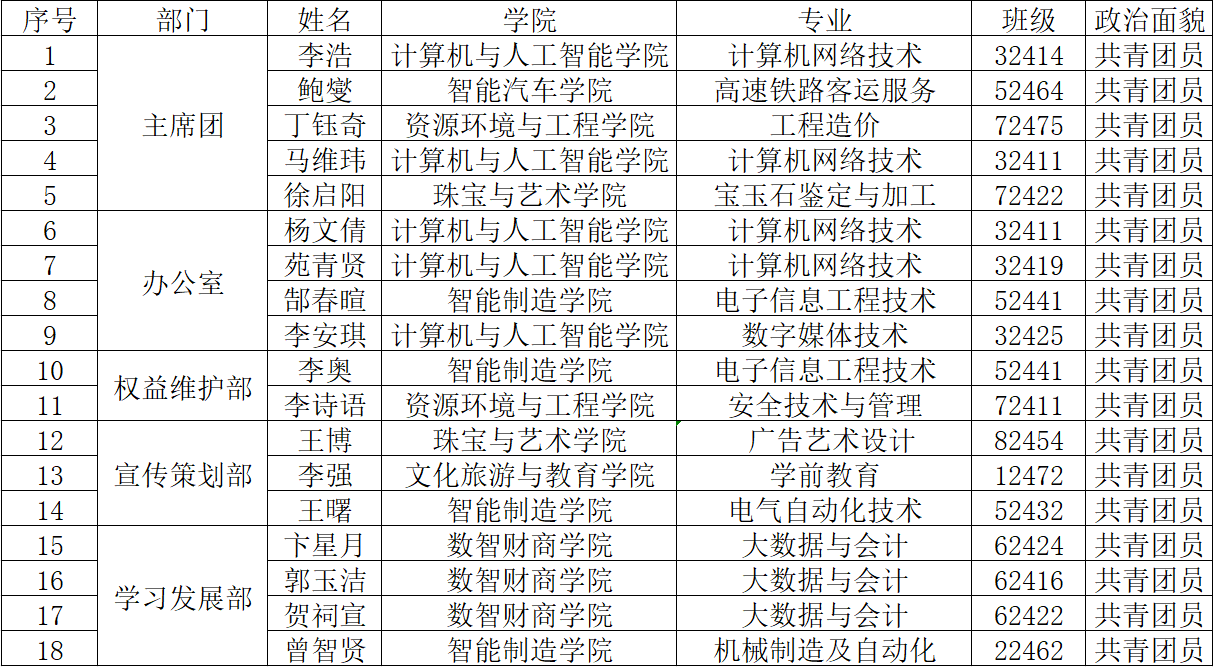 办公室:负责学生会内部人员管理、考核及档案建设工作;统筹协调学生处指导老师及“趣活动”第二课堂相关事务对接工作,确保各项工作有序开展。