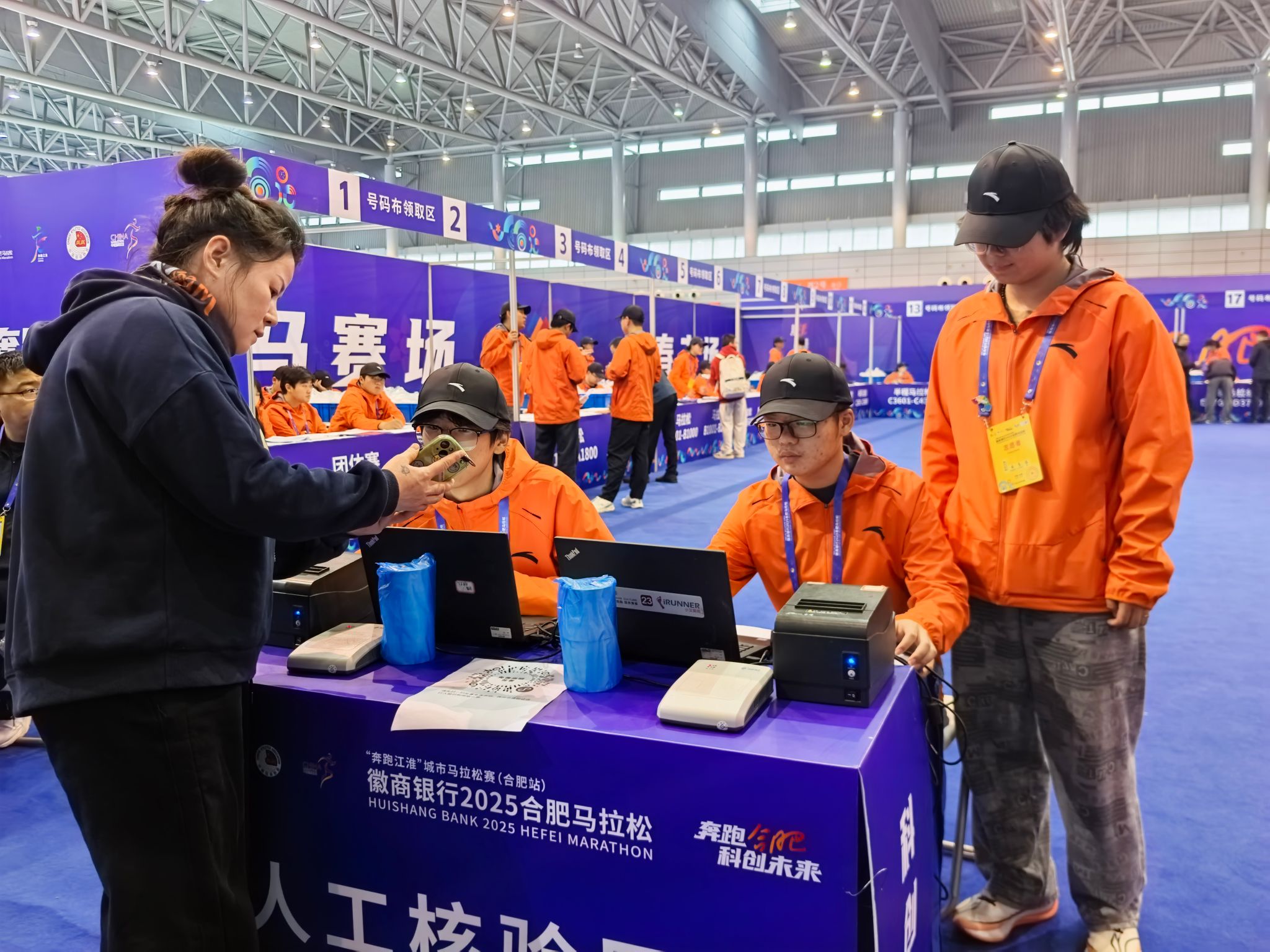 11月5日下午,第一批志愿者率先集结,开启了为期三天半的赛前筹备工作。尽管合肥连日清晨气温偏低,寒意袭人,志愿者们依然每日准时到岗,高效分工,迅速展开工作。搬运物资时,大家化身“大力士”,将一箱箱饮用水、一件件补给品稳稳安放到位;布置场地时,反复核对点位、演练服务流程,即便一杯水的摆放角度都精益求精;核对参赛信息时,双眼紧盯屏幕,不放过任何细节,全力筑牢赛事安全的“第一道防线”。