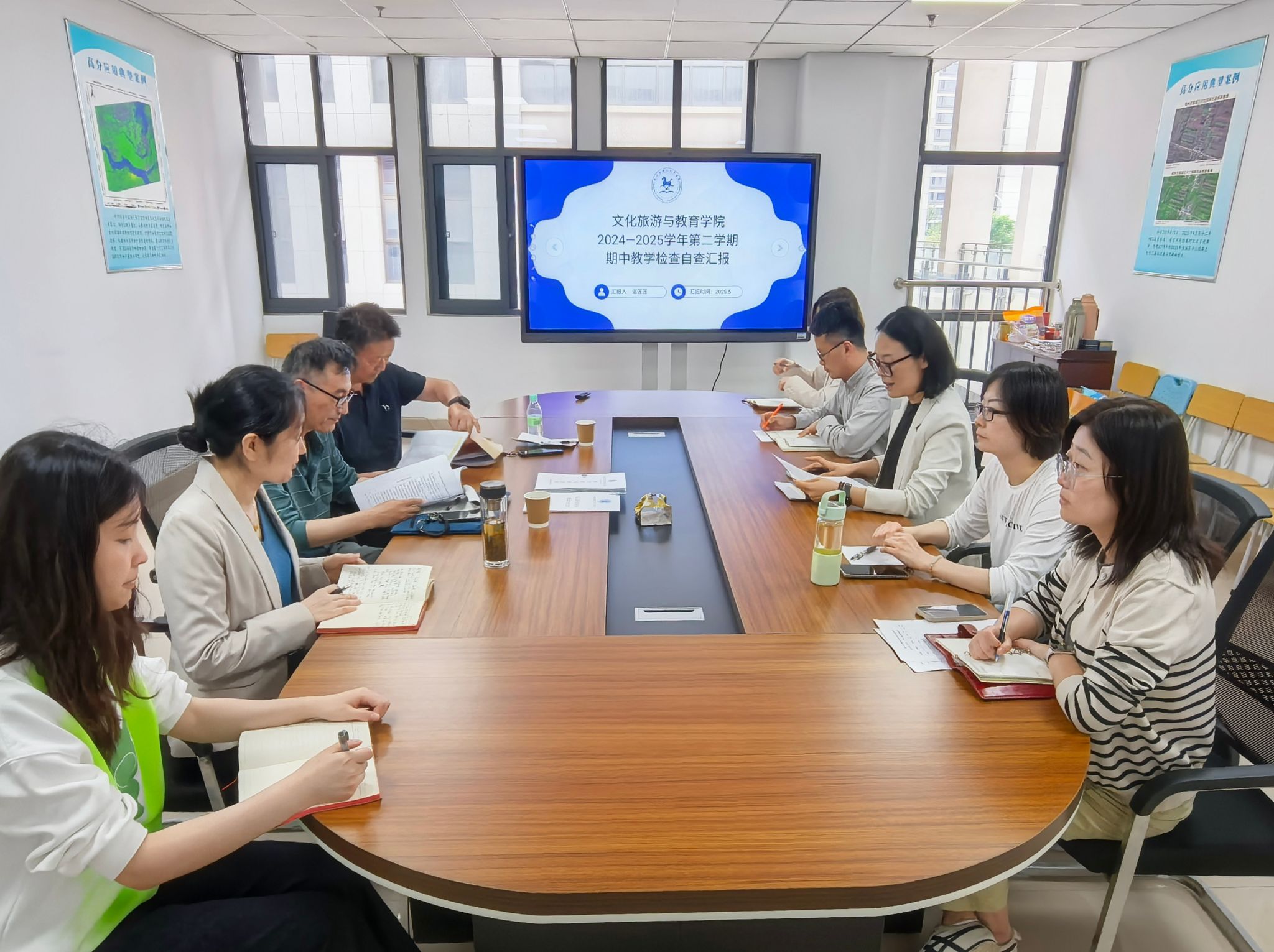 (作者:文化旅游与教育学院 胡瑞明 审核:谌莲莲 邱竹青)5月9日下午,文化旅游与教育学院迎来了本学期期中教学检查。校督导组成员詹新平老师和张劲松老师、教务处副处长韩瑞莅临我院,在教辅210召开专项督导会议。文化旅游与教育学院院长谌莲莲、党总支副书记邱竹青、旅游管理教研室主任韩珊珊、幼儿教育教研室主任徐晓波和教学秘书胡瑞明出席本次会议。
