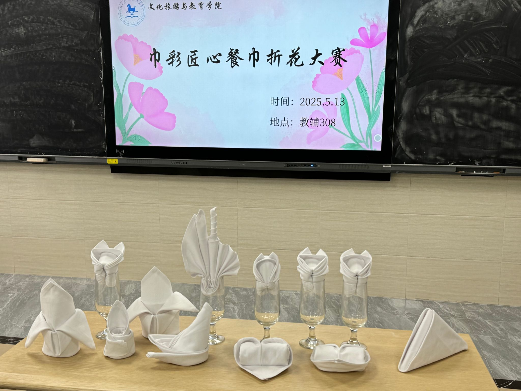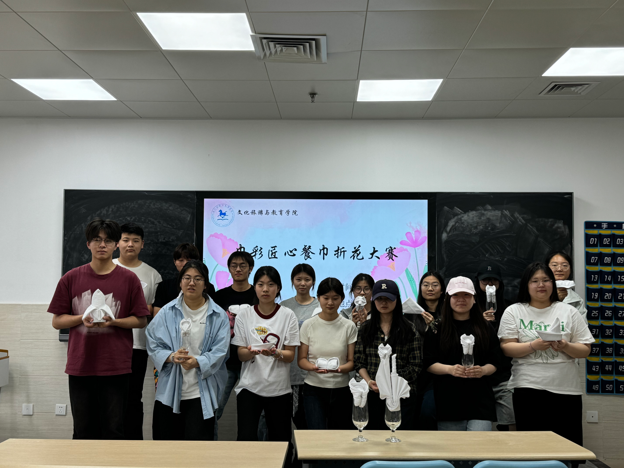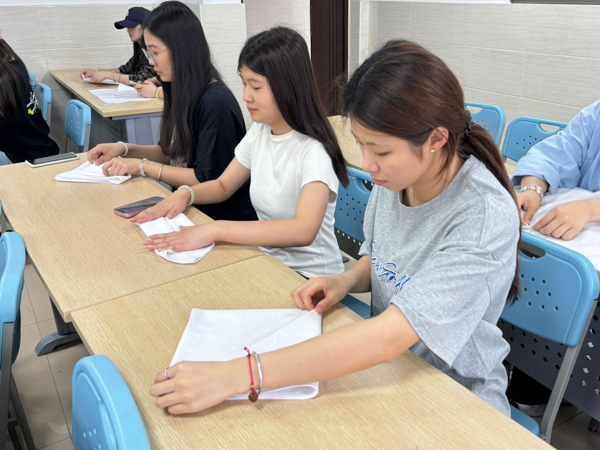 (作者:文化旅游与教育学院团总支 戴晨蕾 郭雨欣 审核:谌莲莲 邱竹青)为响应2025年全国职业教育活动周“一技在手,一生无忧”主题,5月13日,我院在教辅308室成功举办“巾彩匠心”餐巾花创意实践赛。作为文化旅游与教育学院职业教育活动周特色活动之一,本次比赛以“创意赋能技能,匠心点亮职业”为目标,吸引众多同学参与,大家以精巧创意和娴熟技艺生动诠释了“劳动光荣、技能宝贵、创造伟大”的时代风尚。