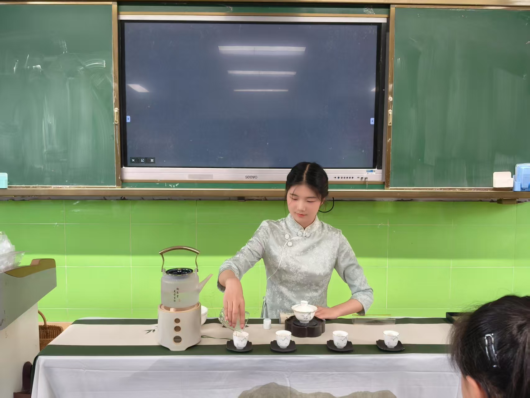 随后,单苏皖同学带来了优雅的茶艺表演,从温杯洁具到投茶冲泡,每一个动作都如行云流水,茶香四溢间,同学们近距离感受了传统茶艺的优雅与精致。