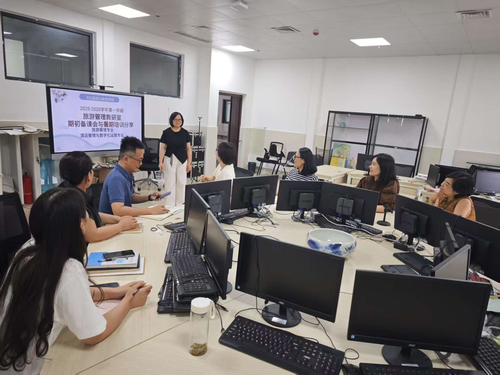 为确保新学期教学工作扎实有序推进,9月3日下午,旅游管理教研室在教辅楼103召开了期初教学集体备课暨暑期培训交流会,会议由教研室主任韩珊珊老师主持,教研室所有专兼职教师参会,会议分为专业课程教学研讨和教师暑期培训收获分享两个议程。