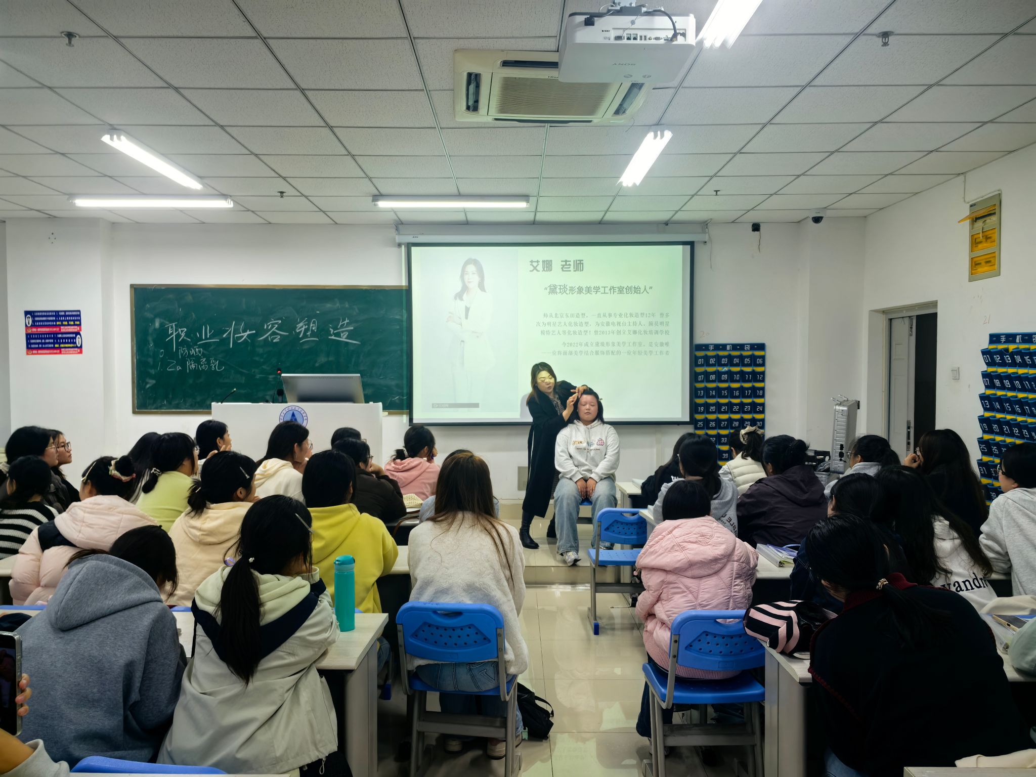 为推进美育教育,提升学生职业形象塑造能力,10月30日,文化旅游与教育学院面向2025级新生举办了两场“职业妆容塑造”专题讲座,特邀黛琰美学工作室创始人艾娜老师担任主讲。