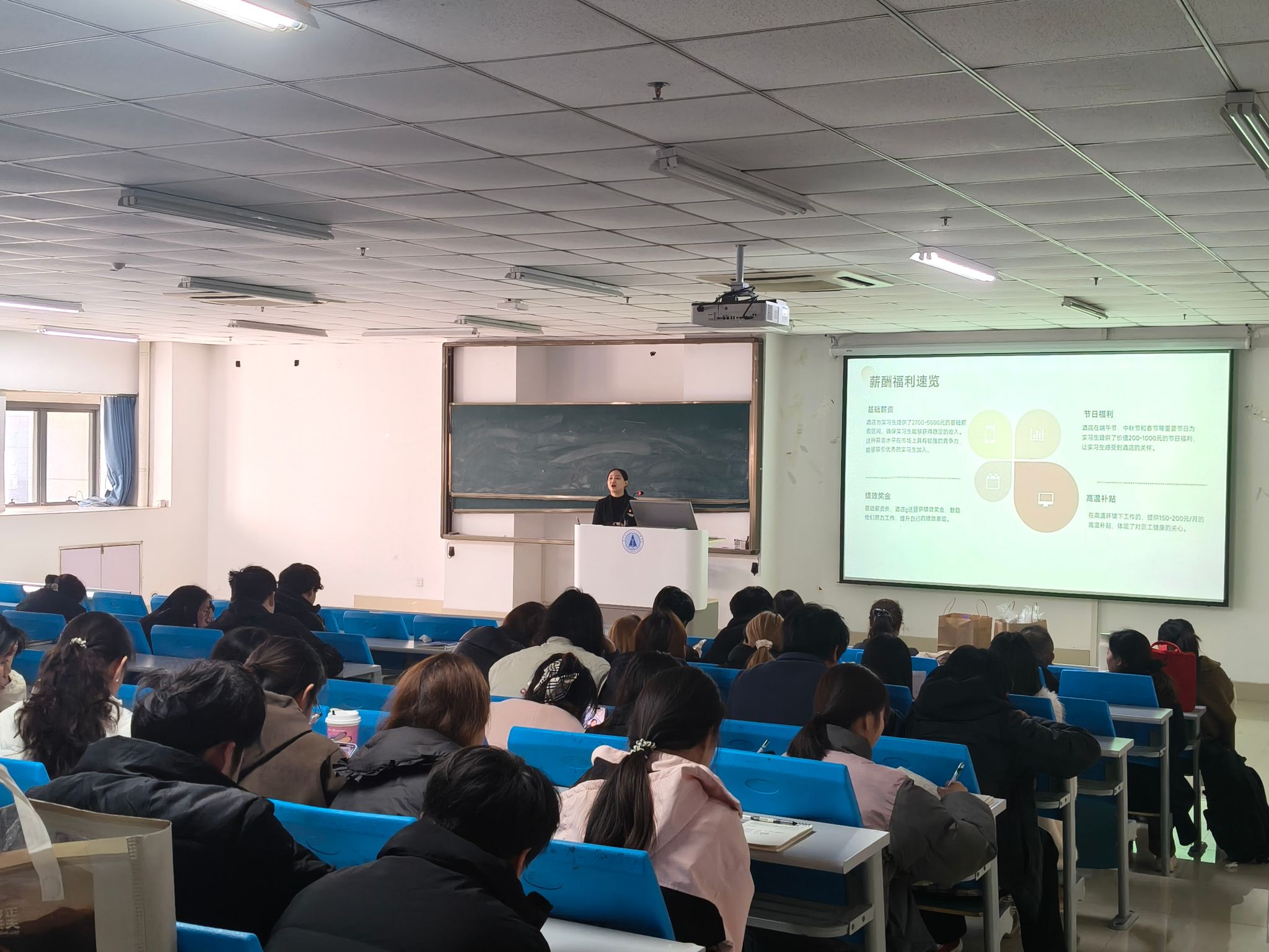 活动伊始,各企业代表依次登台开展宣讲。代表们通过PPT演示、案例分享、互动问答等丰富形式,全面介绍了企业的发展历程、核心业务布局、企业文化理念及岗位需求详情。针对酒店管理岗、研学导师岗、运营助理岗等热门岗位,企业明确了学历背景、专业技能、沟通能力等核心任职条件。同时,结合行业数字化转型趋势,企业代表们还分享了岗位所需的数字化技能、服务创新能力等升级要求,并介绍了岗前集中培训、师徒结对指导、跨部门轮岗锻炼等特色人才培养模式,为学子们的职业规划提供了针对性指导。