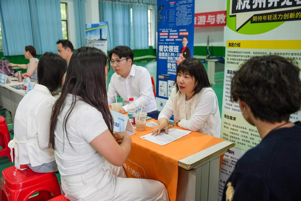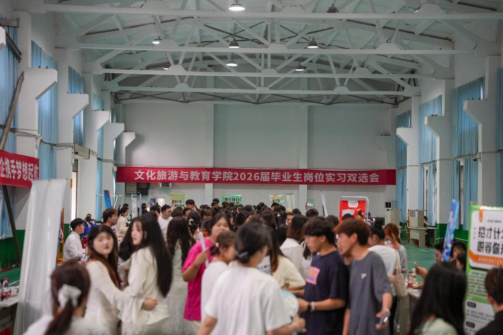 (作者:文化旅游与教育学院团总支 董青颖 宋晨昕 审核:谌莲莲 邱竹青)为进一步加强我院与企业交流合作,促进学生高质量就业,5月15日,我院2025届毕业生就业暨2026届毕业生岗位实习双选会在校园乒羽中心圆满举行。来自全国各地的30多家优质企业齐聚现场,为毕业生们提供酒店管理、学前教育、研学旅游等多领域实习岗位,搭建起校企深度对接的桥梁。