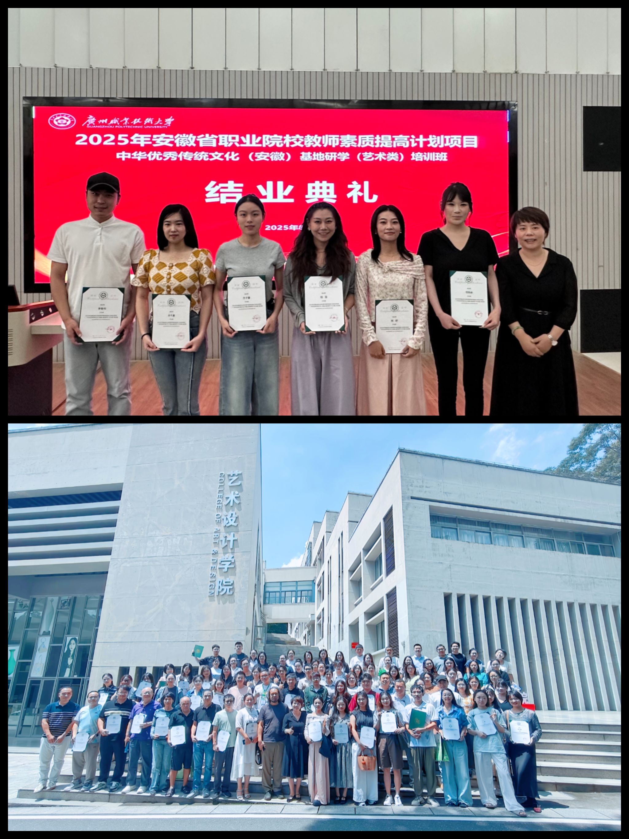 近日,2025年安徽省职业院校教师素质提高计划项目“中华优秀传统文化(安徽)基地研学(艺术类)培训班”在广州圆满举办,文化旅游与教育学院音乐教师孙千惠老师参加。为期21天的研学以“传统文化传承”为核心、“数智技术赋能”为抓手,通过“课程学习+企业实践”双轨模式,为教师搭建起理论革新、技能锤炼与视野拓展的优质平台,助力音乐教学高质量发展。
