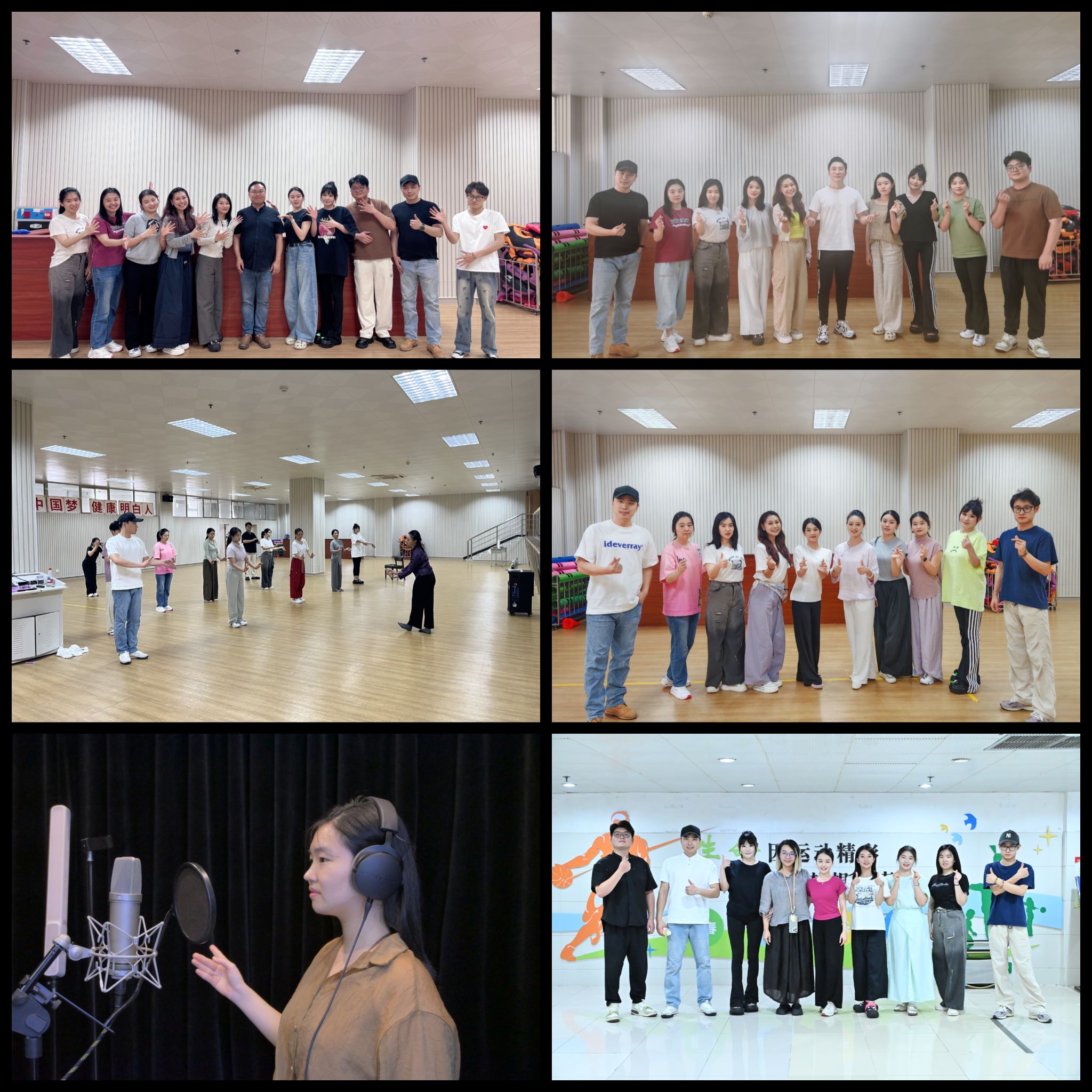 舞蹈实践、声乐实践、岭南民间歌舞表演综合排练中,从动作分解到完整表演、从单独演唱到合唱配合,沉浸式感受岭南文化的鲜活艺术魅力;录音实践环节中,将排练成果录制成完整作品,全程参与音准调整与音色优化,进一步掌握“艺术成果记录+教学反馈优化”的实践方法,为未来指导学生音乐实践、提升艺术实践教学质量积累宝贵经验。
