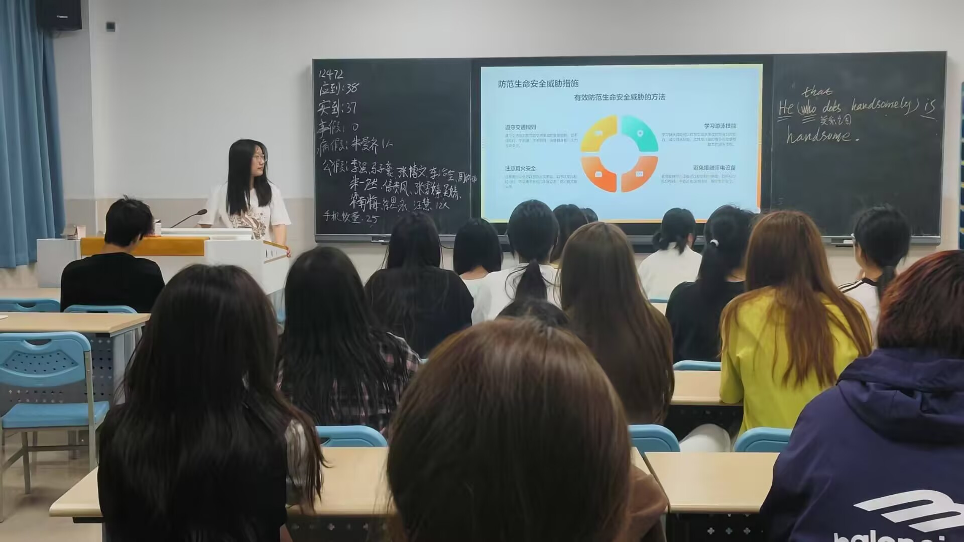 在生命安全主题环节,各班围绕防溺水、防火、防诈骗、交通安全等内容展开教育,结合真实案例分析事故成因及应对措施。有的班级通过视频演示灭火器使用方法、模拟宿舍逃生路线,增强学生应急避险能力;有的班级则以“校园贷陷阱”“电信诈骗套路”为重点,提醒大家提高安全警惕,保护个人信息。