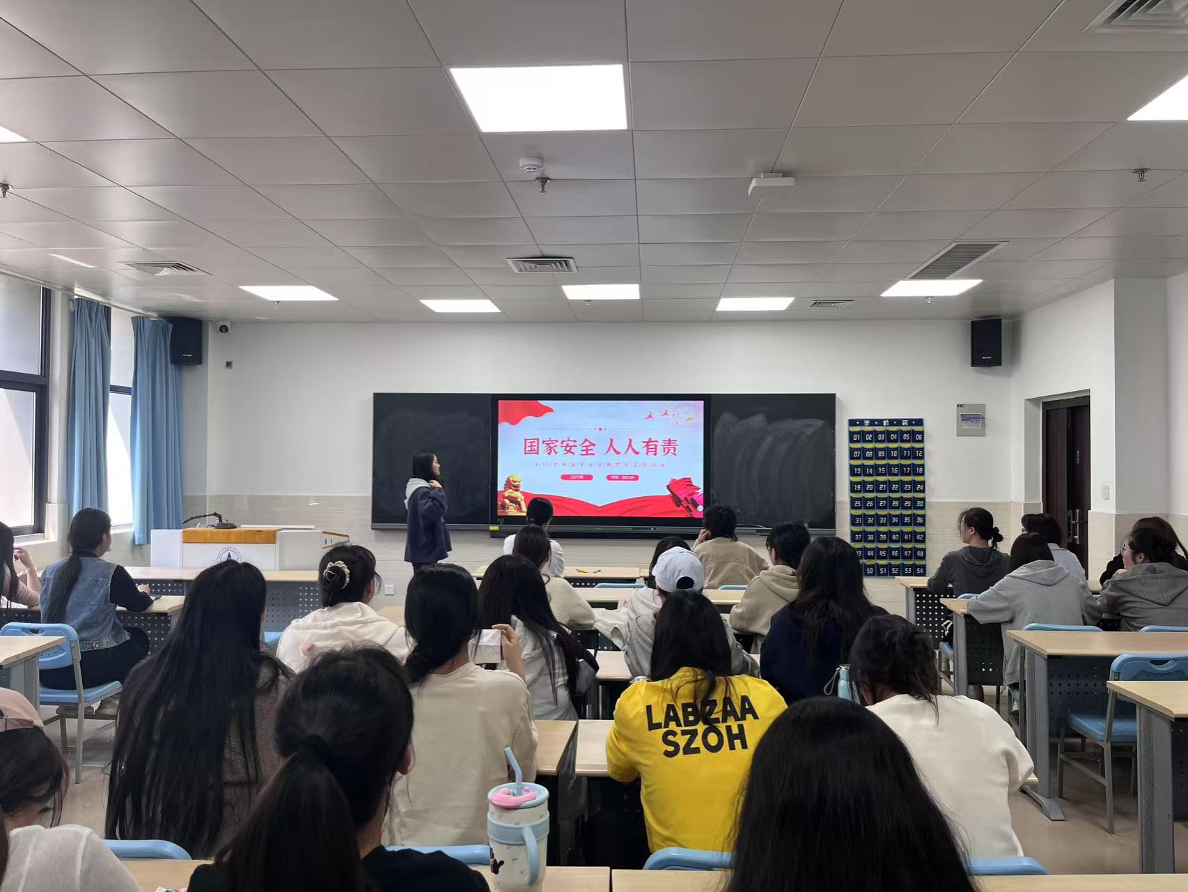 各班级借助精心制作的PPT,将国家安全复杂体系拆解为一个个易懂模块。从传统军事安全的捍卫疆土,到新兴网络安全的数字堡垒守护;从关乎民生的粮食安全战略,到聚焦生态的绿水青山保卫战,全方位的知识普及让同学们眼界大开。部分班级则通过播放教育视频,让同学们直观地了解危害国家安全行为的严重后果。随后的讨论环节,同学们热情高涨,各抒己见。大家相互启迪,明晰当代青年于国家安全大格局中的坐标与担当,共绘守护国家的青春蓝图。