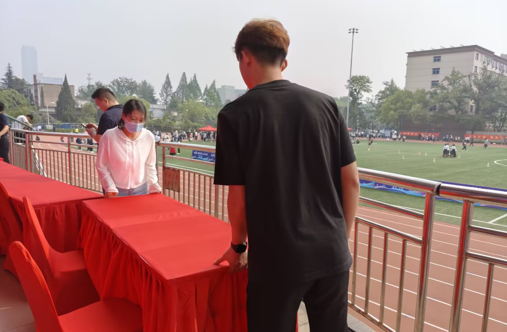 活动当天,志愿者团队于清晨准时抵达赛场。在认真聆听现场负责人对岗位规范、安全须知的部署后,便迅速投身到工作当中。在田径赛场,志愿者们协助裁判高效完成检录、计时以及成绩记录等工作,保障田径赛事的顺利开展。在趣味项目区,他们耐心地向参与活动的教职工讲解各项目规则,积极帮助解决项目进行中遇到的困难,同时全力维护现场秩序,确保活动安全有序地进行。在颁奖环节,志愿者们有序引导获奖选手上台,协助颁奖嘉宾顺利完成颁奖流程,并对颁奖过程进行拍摄记录,留存下这一重要时刻。